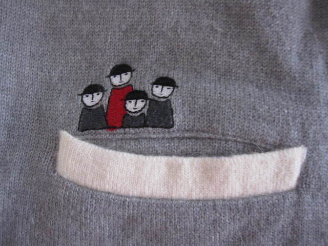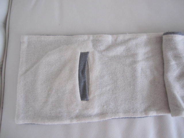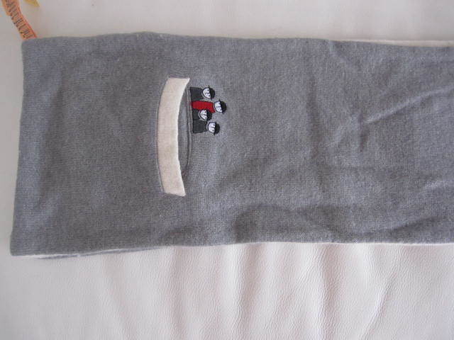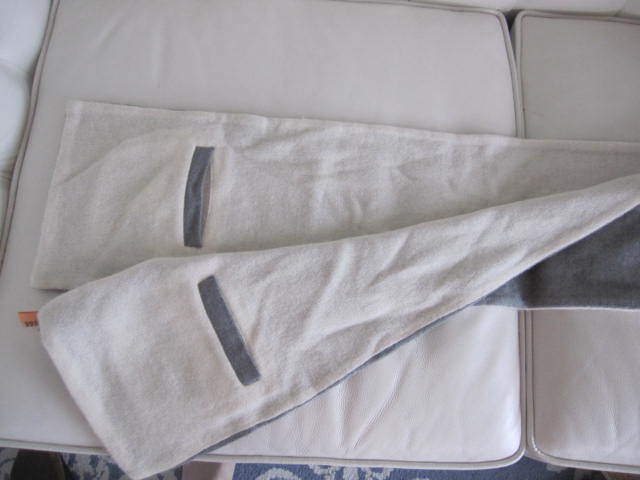 PICONE ピッコーネのフード付きマフラー、グレーと白のリバーシブルです。
