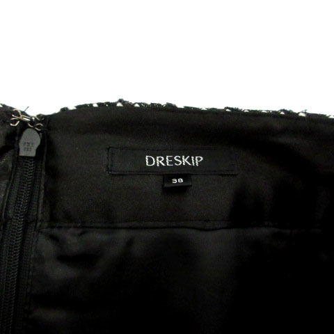 ドレスキップ DRESKIP スカート 台形 ミディ丈 ツイード ラメ ブラック 黒 ホワイト 白 シルバー 38 レディース