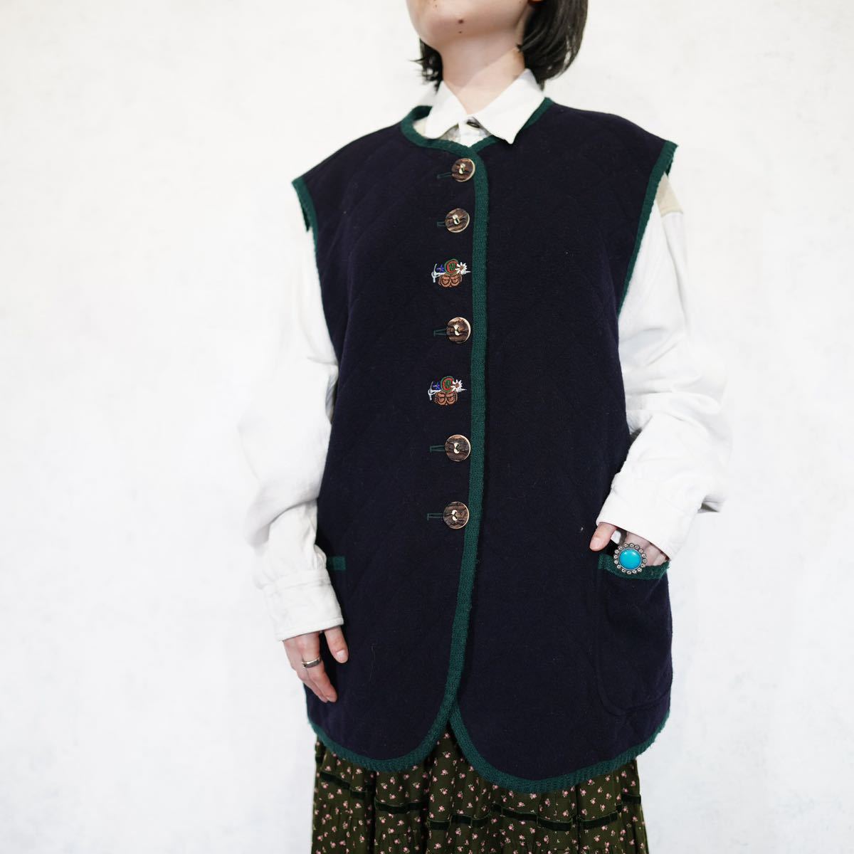 EU VINTAGE EMBROIDERY DESIGN WOOL TYROLEAN VEST/ヨーロッパ古着刺繍デザインウールチロリアンベスト