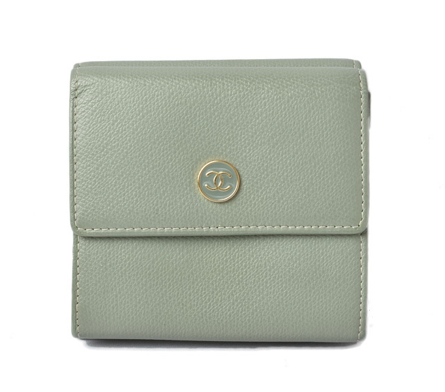 シャネル 財布 CHANEL 二つ折/折財布 A20902 ダブルホック ココマーク ライトグリーン