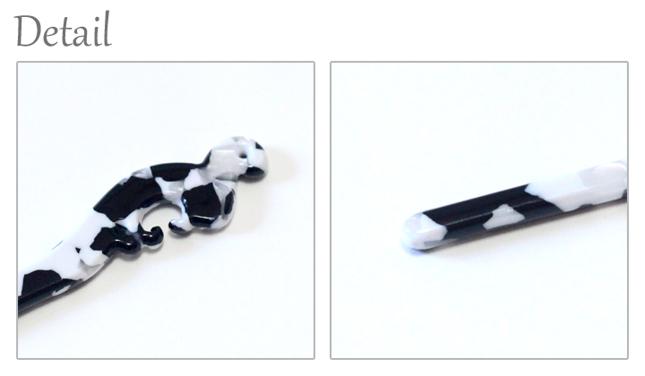 商品説明 | マーブル柄の1本かんざし。 トップ部分は透かし細工が施されていますので、刺したときにちらっと見えるモチーフが素敵です。 お団子ヘアや、まとめ髪にサッと刺すだけで華やかな印象に♪ 色違いで2つ付けや、他のアクセサリーと重ね付けしてもオシャレです☆ |