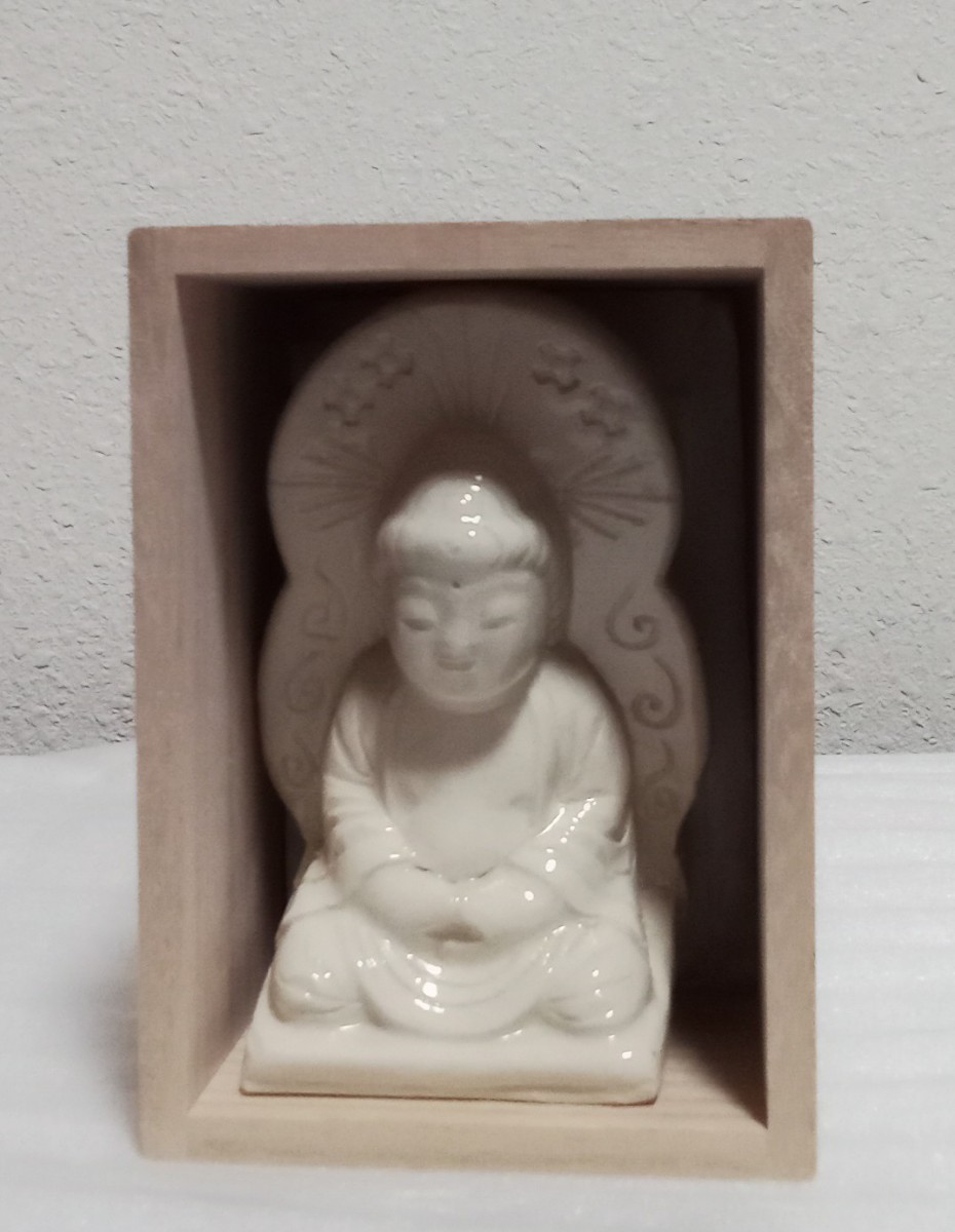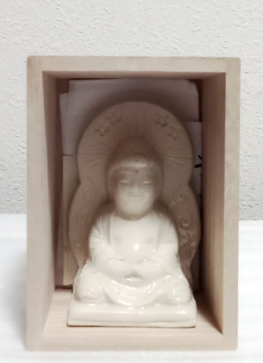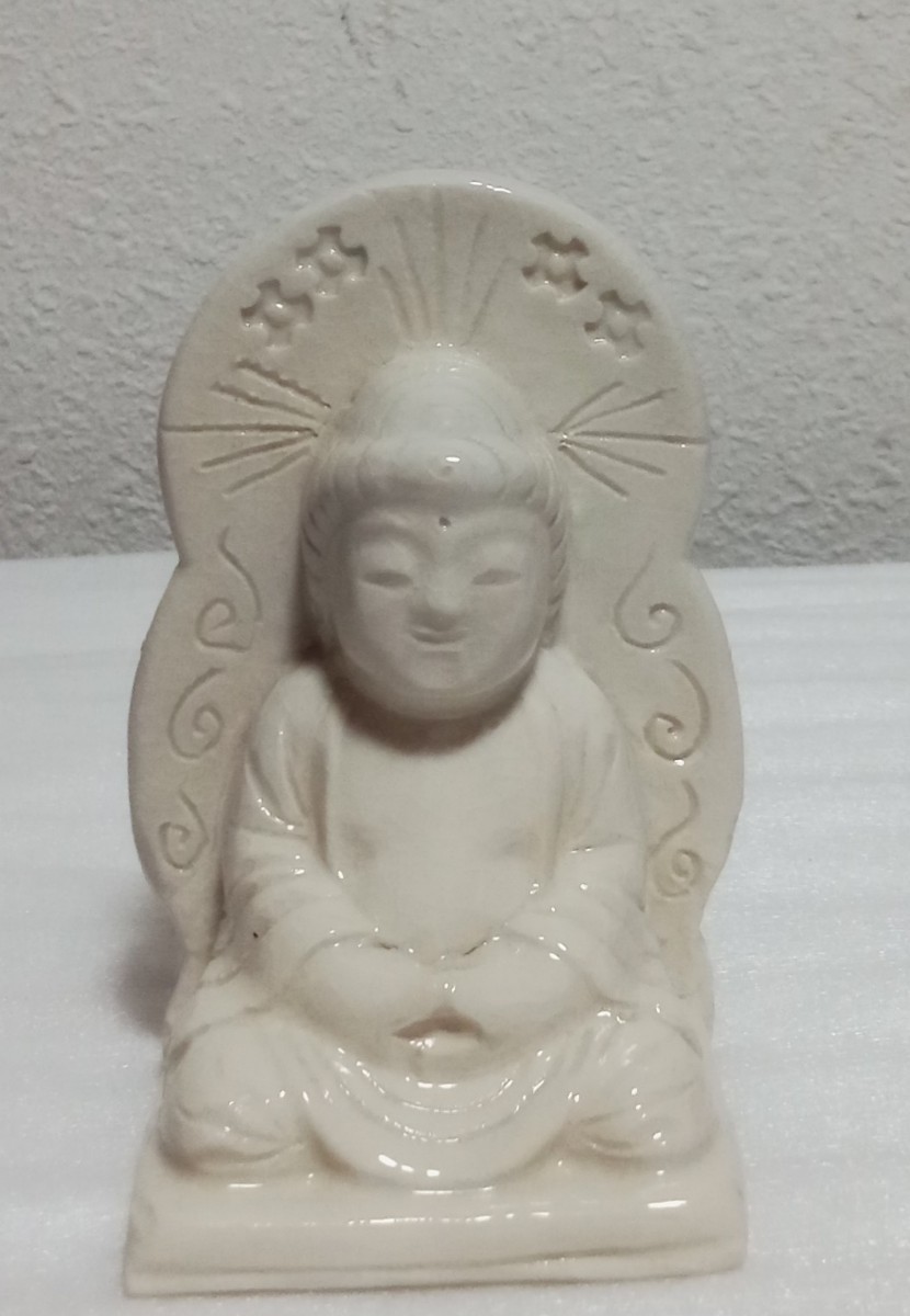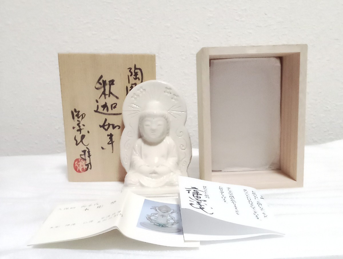 ★初だし 陶彫 釈迦如来 久保田御季代 共箱栞付き 美術工芸品 彫刻工房 置物 飾り物 信仰 御守り