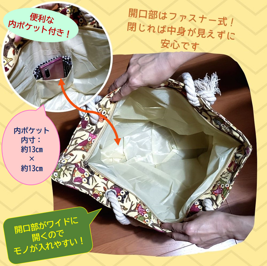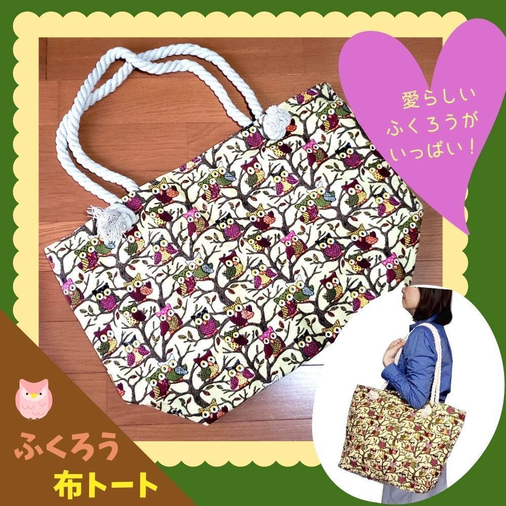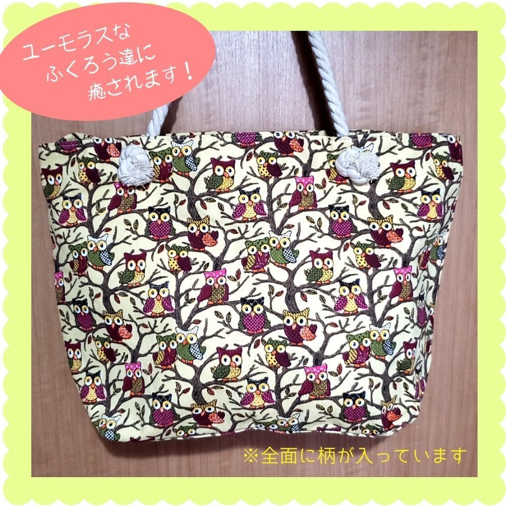 かわいいフクロウ柄に癒されるキャンバス地トートです!