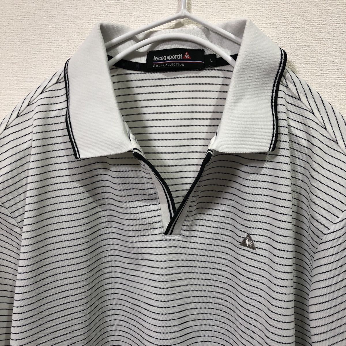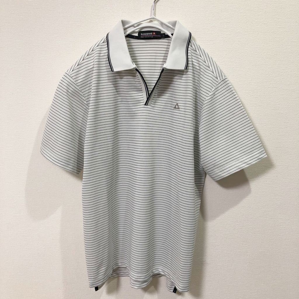 「商品名」★ ルコックスポルティフ le coq sportif 半袖 ポロシャツ ゴルフ ウェア ホワイト系 ボーダー柄 Lサイズ QG1962
