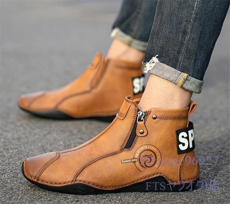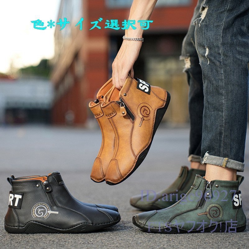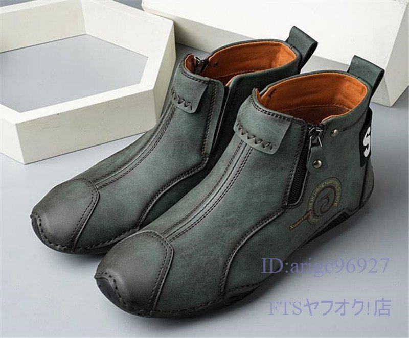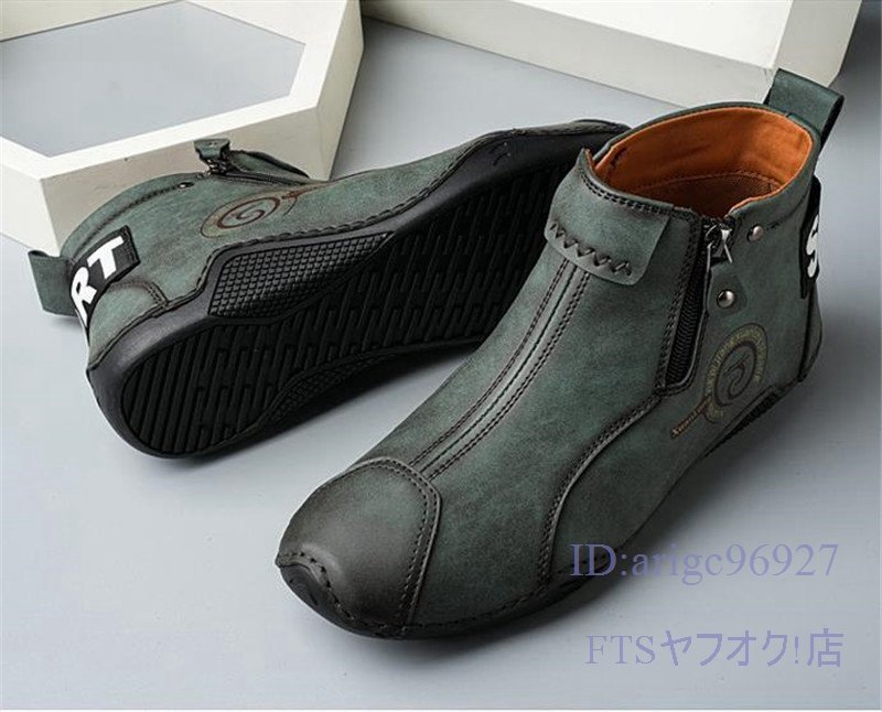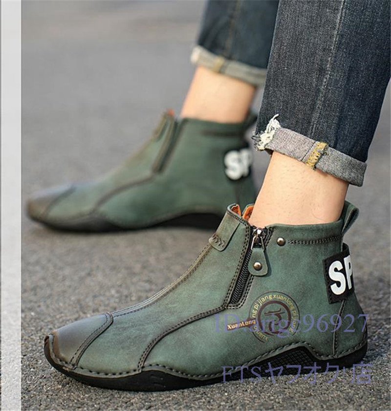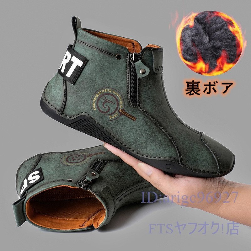 U397☆新品裏ボアショートブーツ スリッポン ハイカット マーティンブーツ メンズ 秋冬防寒 ドライビングシューズ グリーン 27.5cm