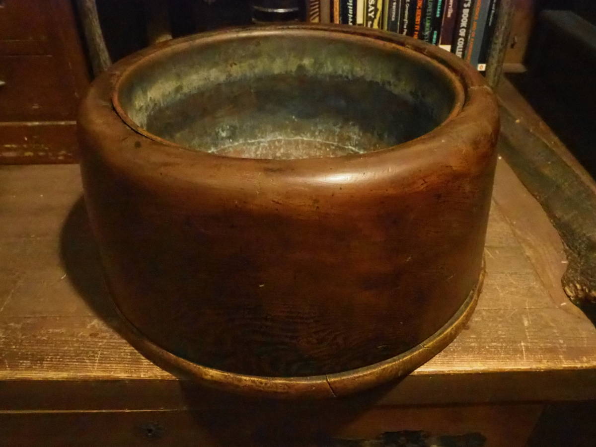 【明治期無垢欅の火鉢】古道具アンティーク骨董インテリア手あぶりインダストリアル自在鉤銅鍋囲炉裏箪笥古民具骨董焜炉薪ストーブ