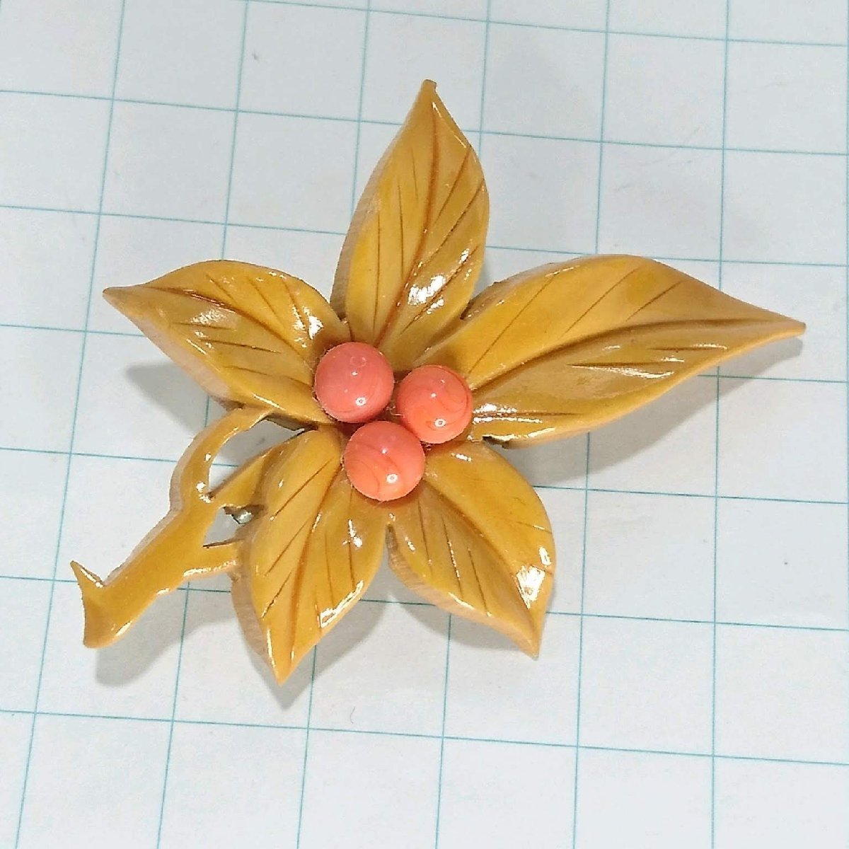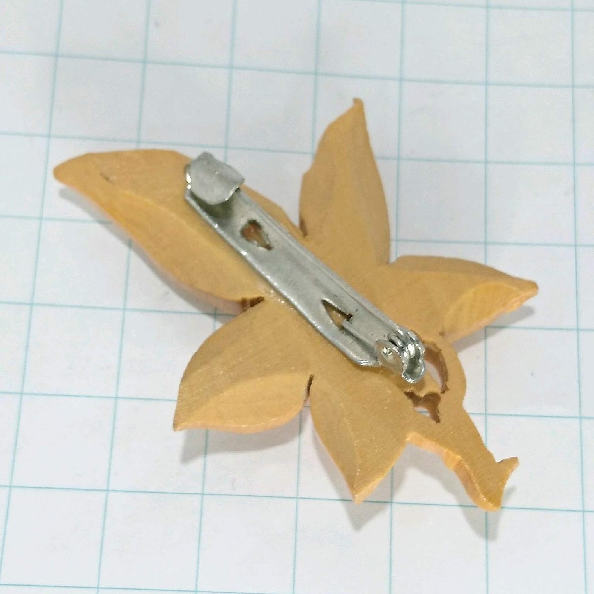 送料無料)ビンテージ☆木彫り 葉っぱモチーフ☆アンティーク ブローチ A22743