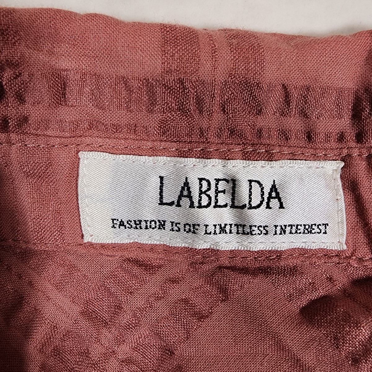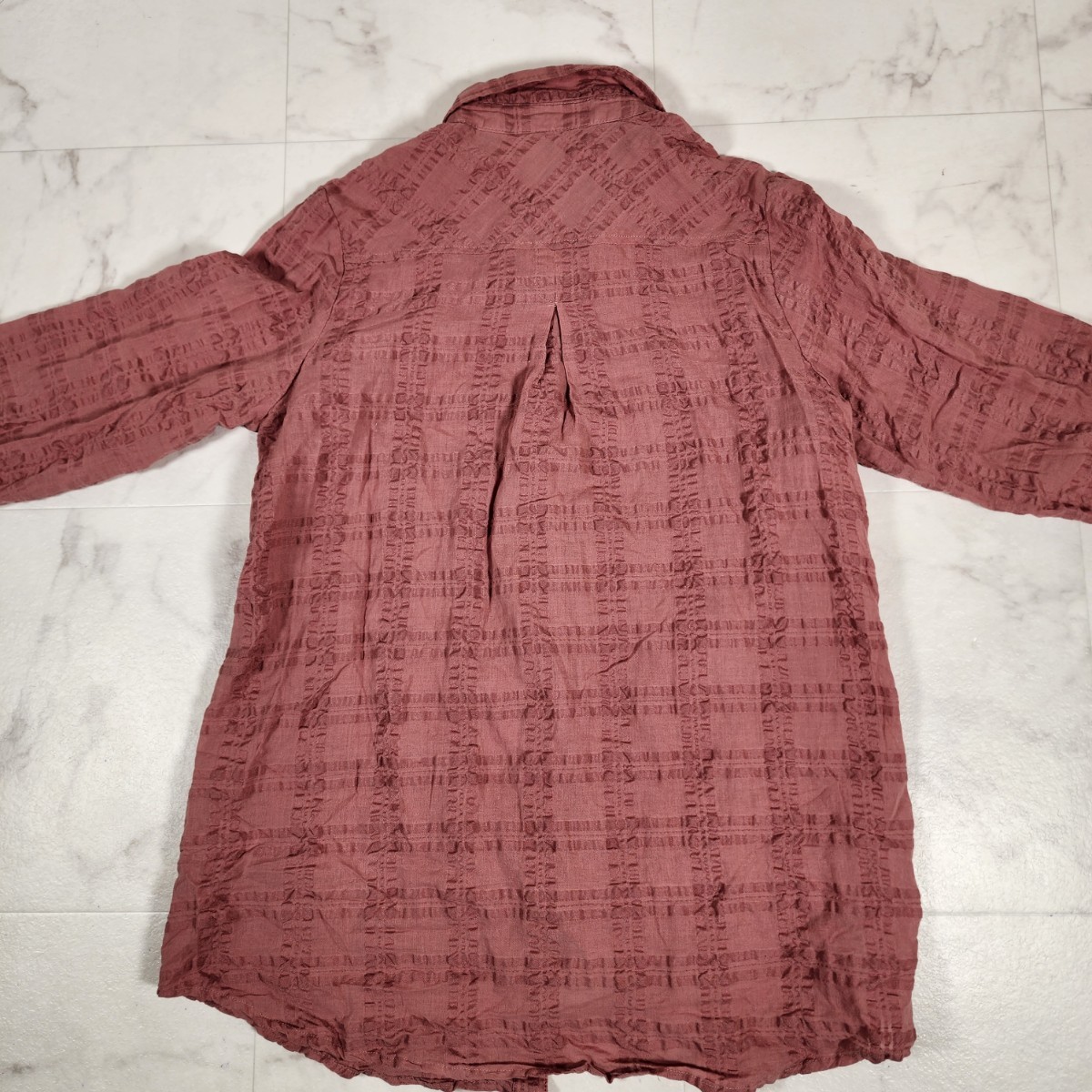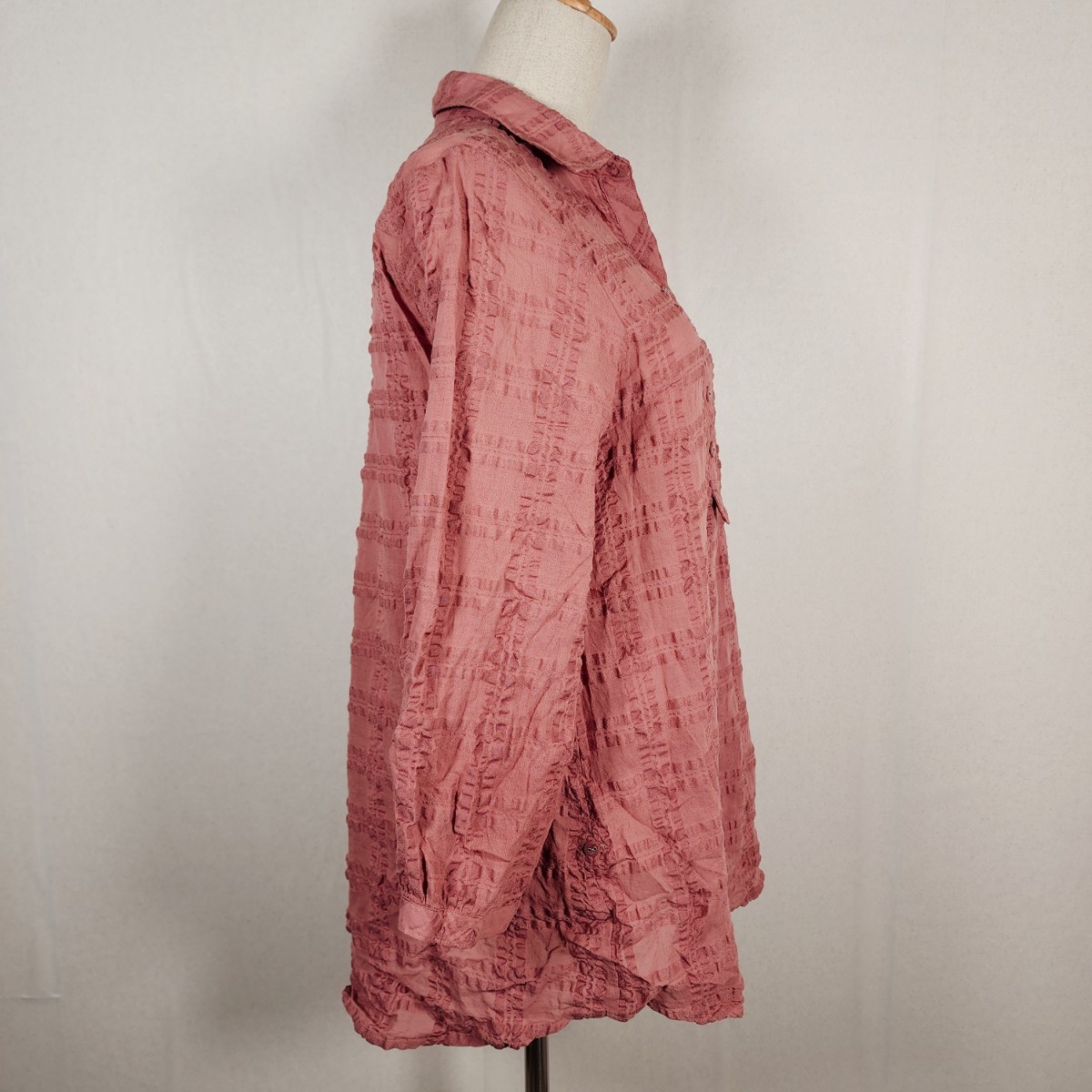 美品 LABELDA(ラベルダ) レディース カジュアル シャツ ジャガード M ピンク(桃)オープンカラー シャドーチェック 平成レトロ