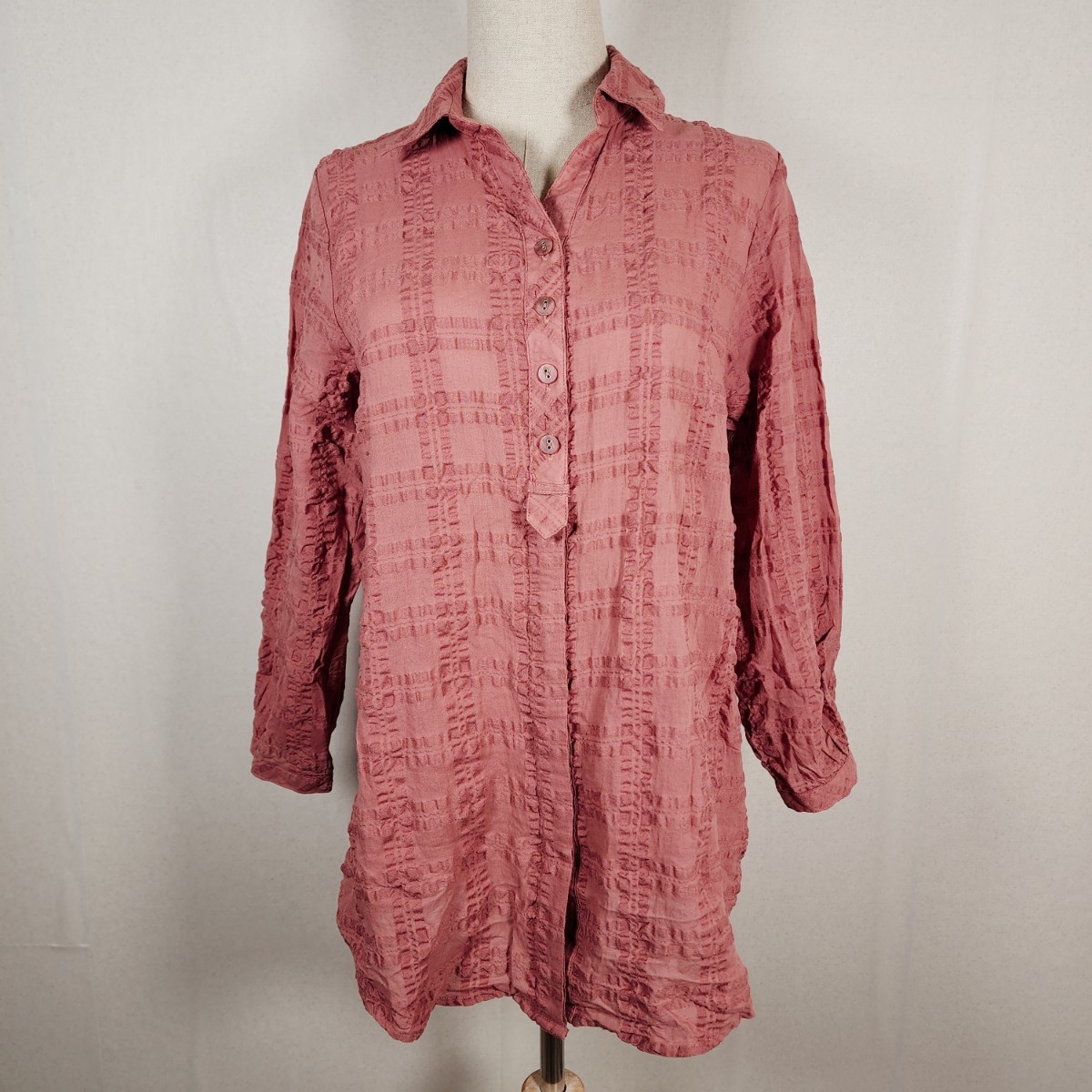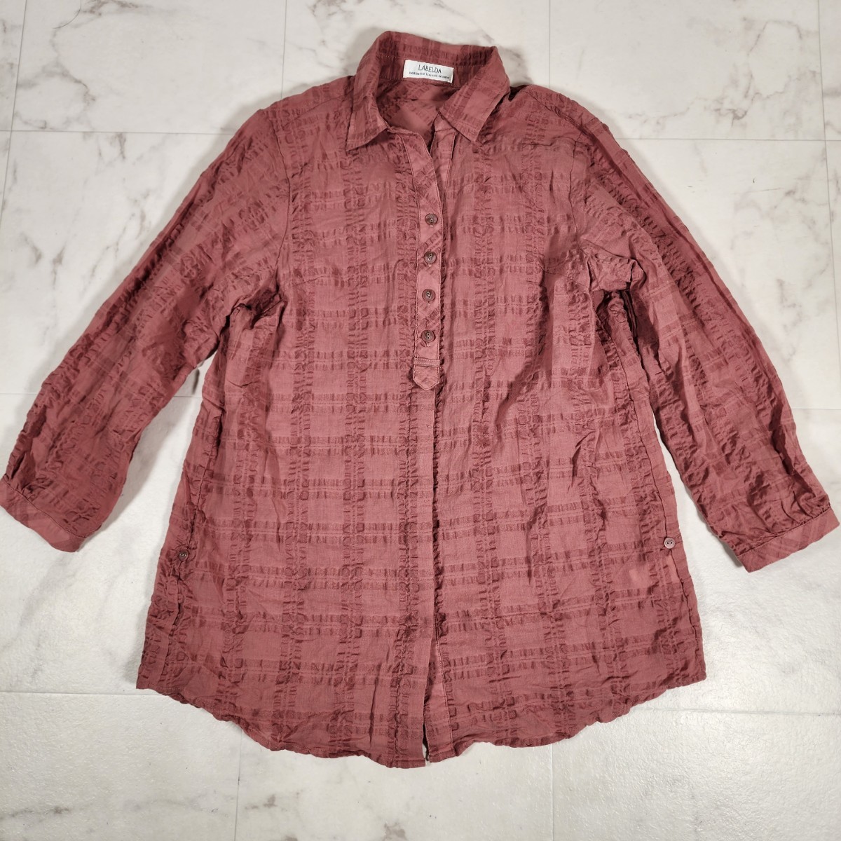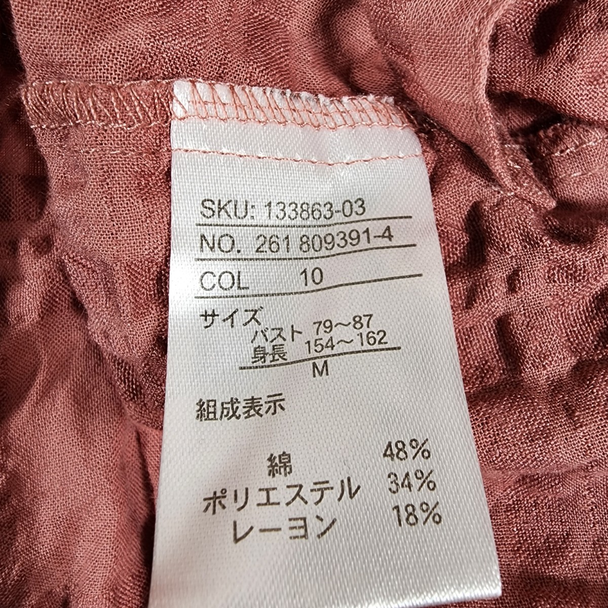 美品 LABELDA(ラベルダ) レディース カジュアル シャツ ジャガード M ピンク(桃)オープンカラー シャドーチェック 平成レトロ