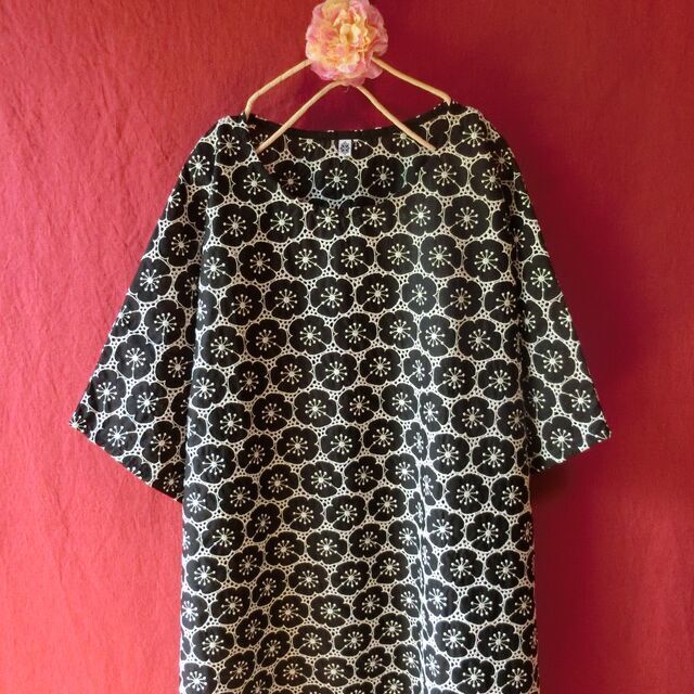 総レース お花刺繍 ゆったりワンピース 白黒* ハンドメイド *北欧*ナチュラル229