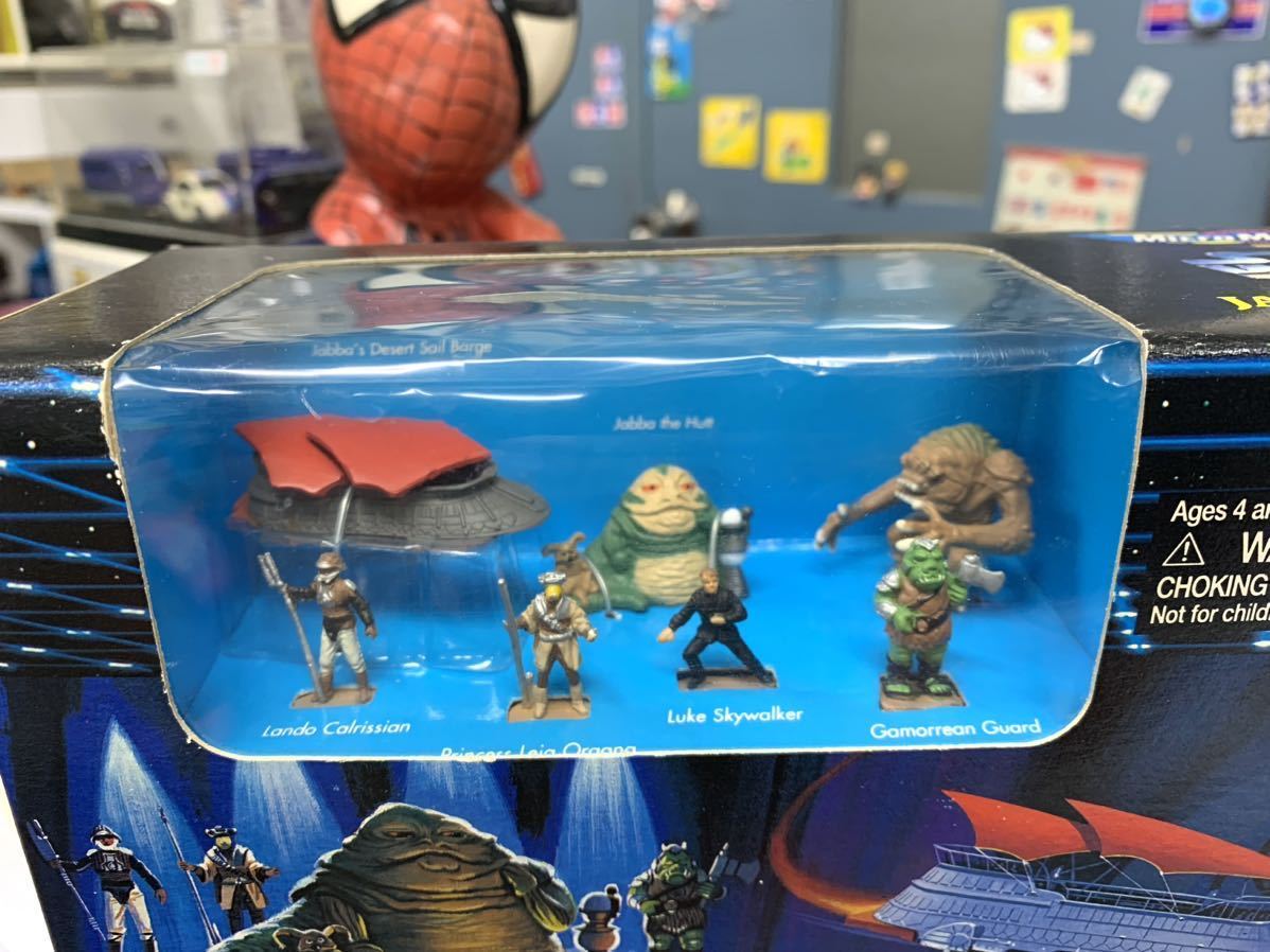 ●新機~保管品(未使用)●1、3枚目画像、ご覧の通り激レアでめちゃカッコいい、今後は益々希少なスターウォーズのマイクロマシーン『R2ーD2・ジャバの館?』1機(箱入り)、を出品致します。今後の入手は、益々難しくなりそうなお品ですが、保管品等現況ご了解にて、(極端に神経質な方、自己紹介欄・説明文読めない方、連絡・入金ルーズな方々は今すぐ撤退お願い致します。)・・・・(◆まともな評価交換出来ないお方は絶対入札しないで下さい!!)・・仕入れ値札等が付いている場合もございます。・・・・・・★画像にあるものが全てで、近年のお品ですがR2の本体がSWワールドになる超カッコ良くて希少なお品でございます。・・・(同日おまとめ発送も可能です。)・・・・・・・・・・・・・・・