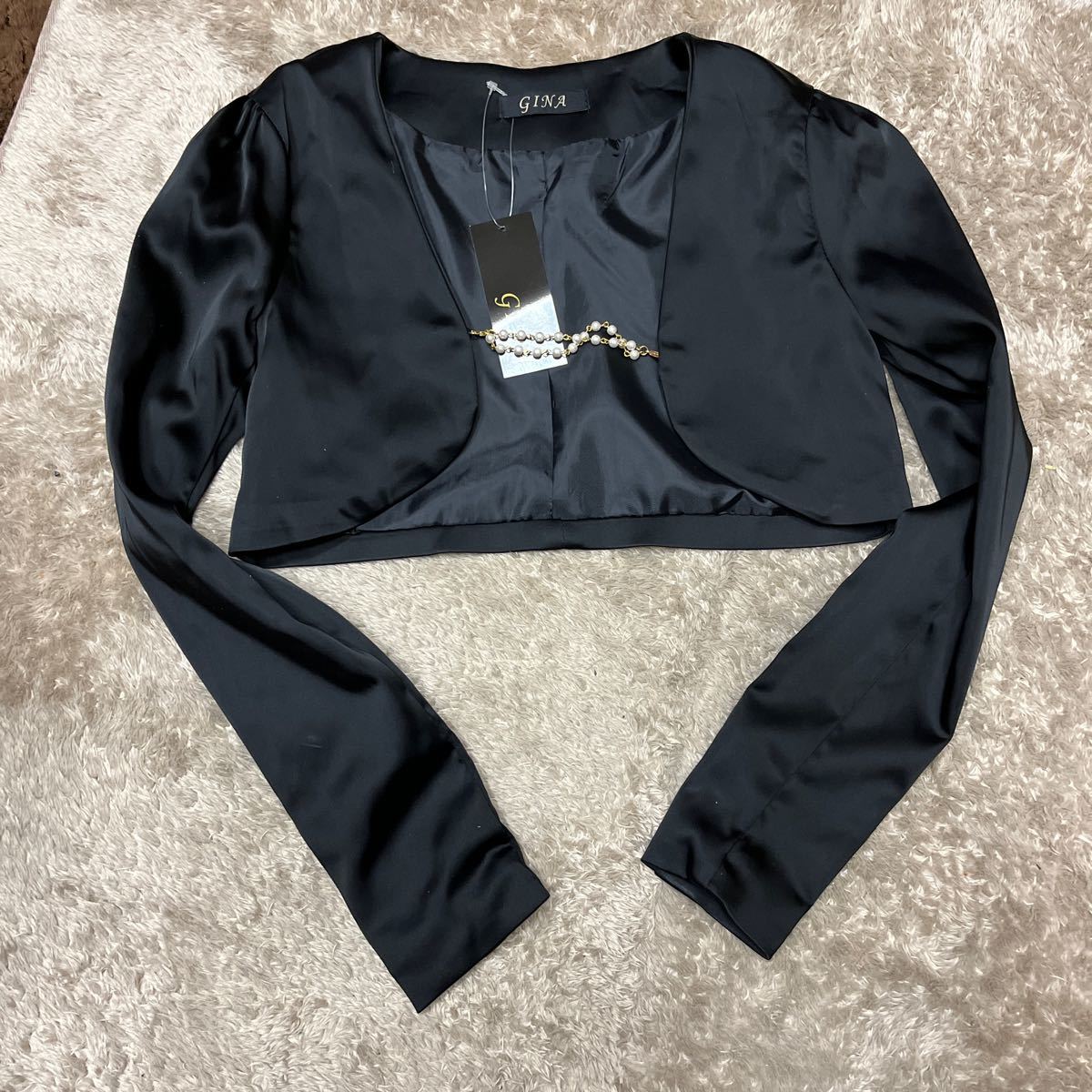 超お値打ち出品 小さめサイズ Lady's パールのアクセントが素敵なボレロ Sサイズ ブラック 新品タグ付未使用品になります。