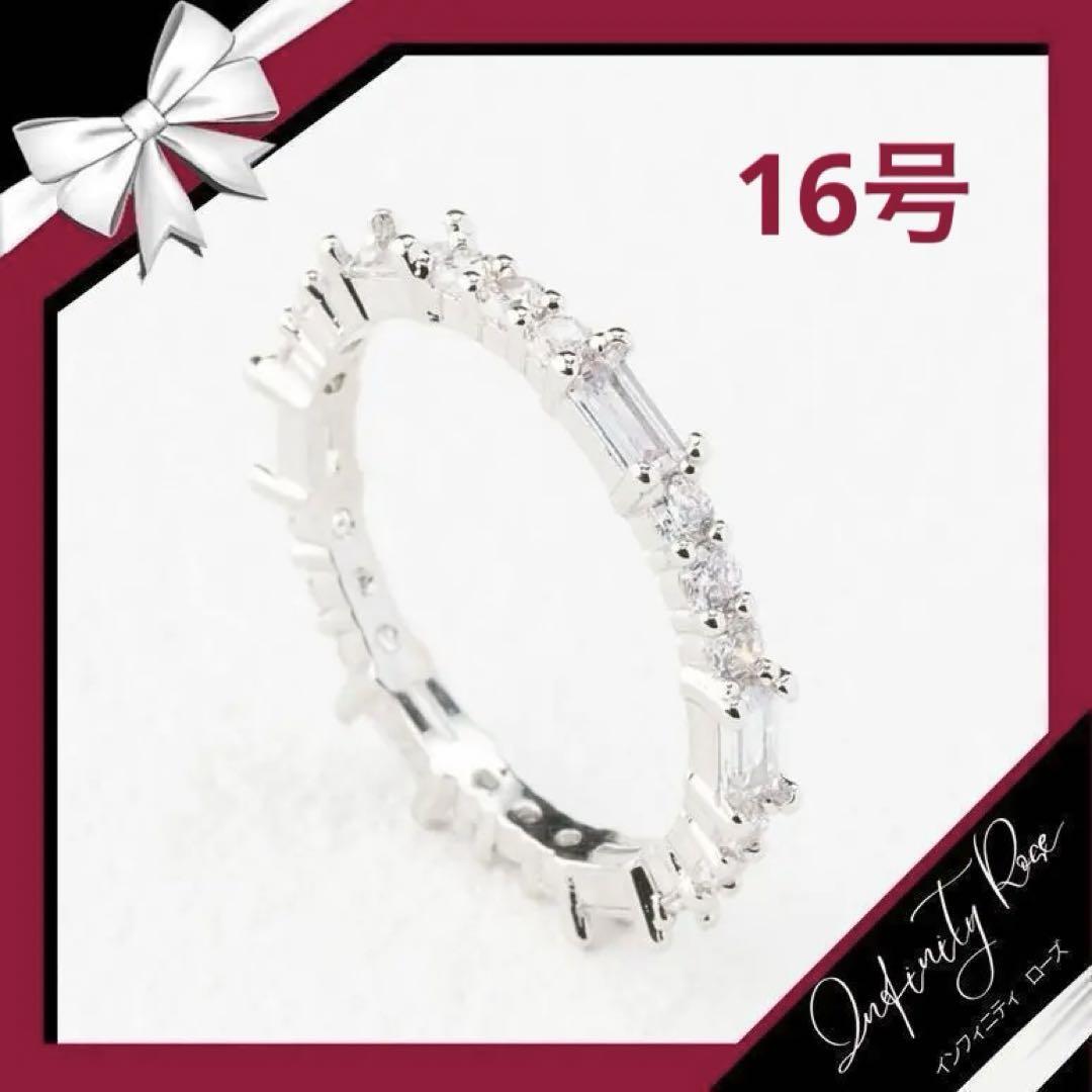 (R040S)16号 シルバー清楚なランダムクリスタル細リング 高価爪留め指輪