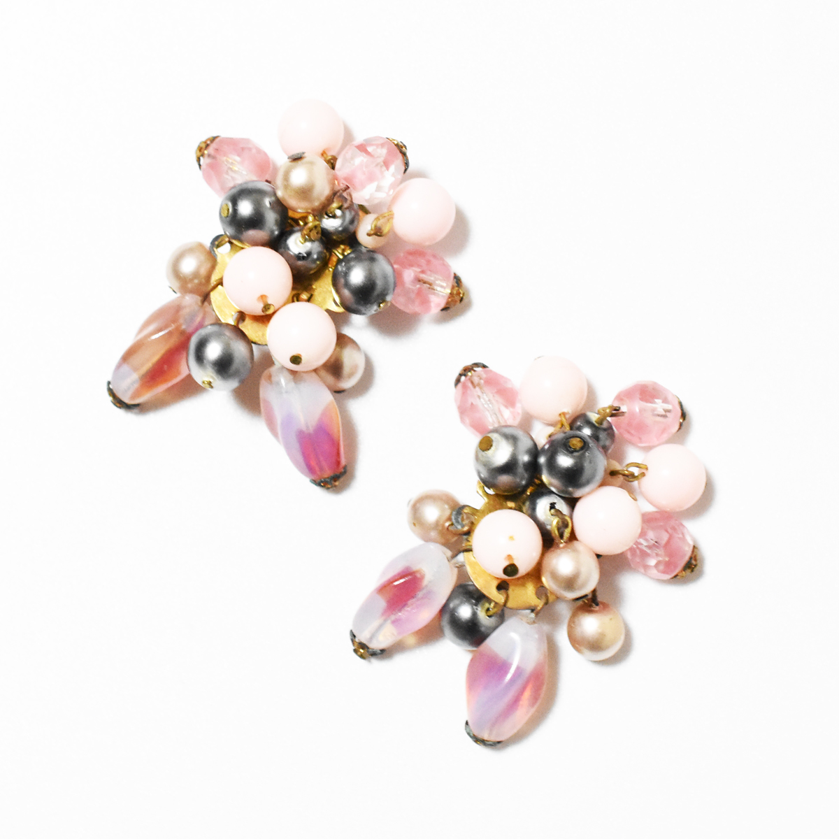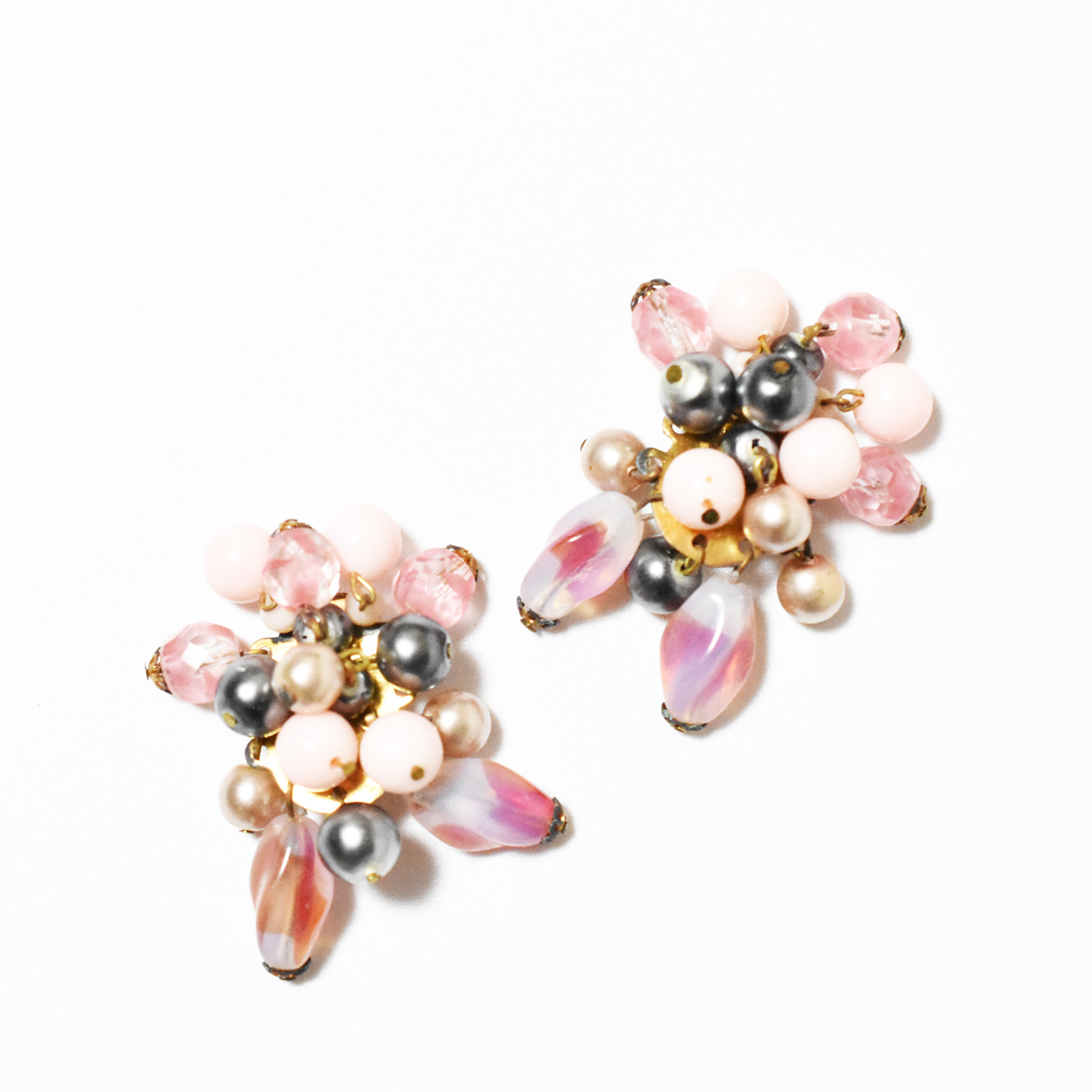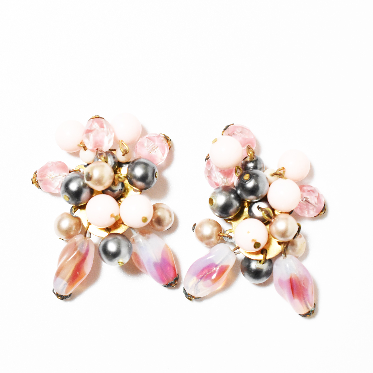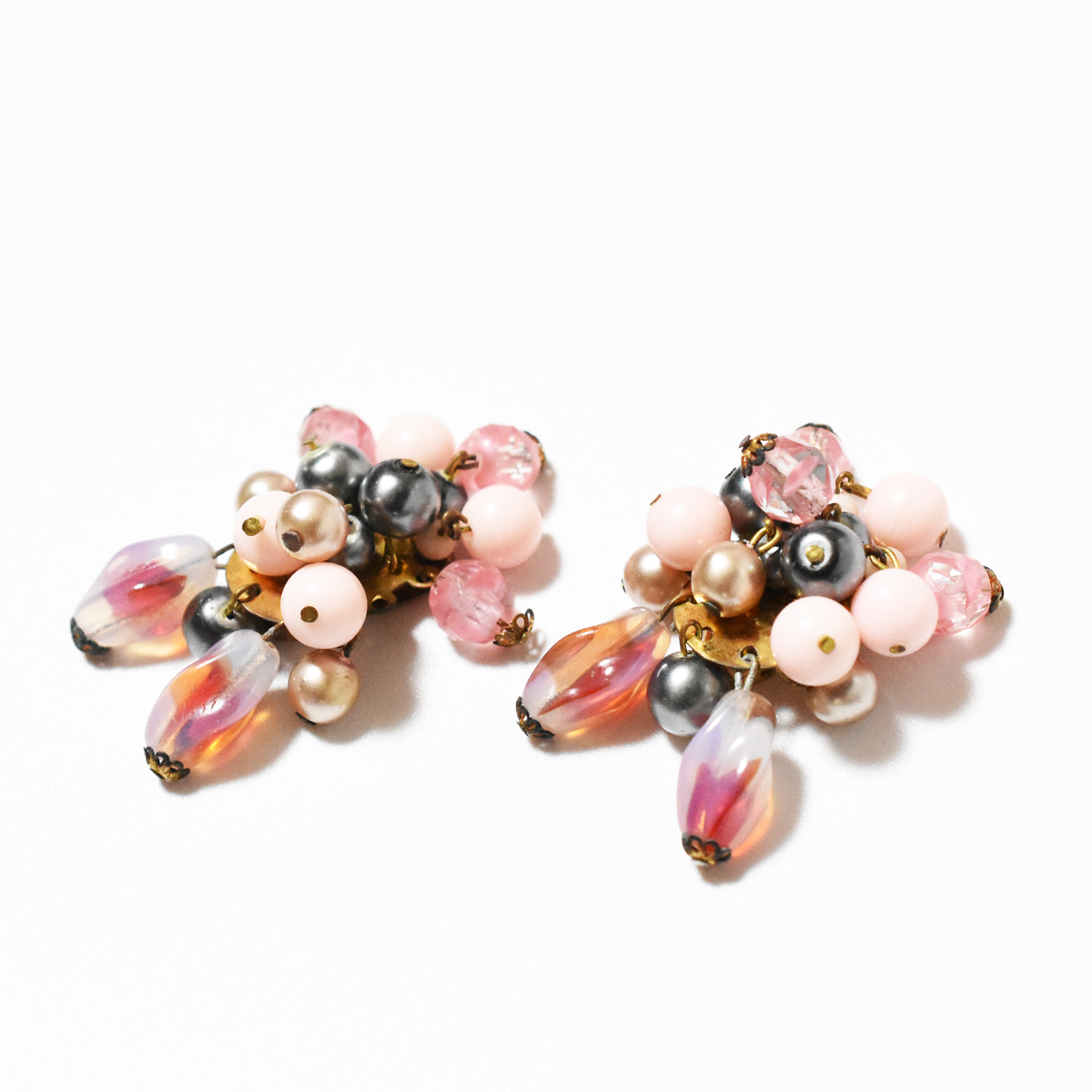 1950年代 ドイツ製 グレー×ピンク ビーズ ヴィンテージイヤリングです。