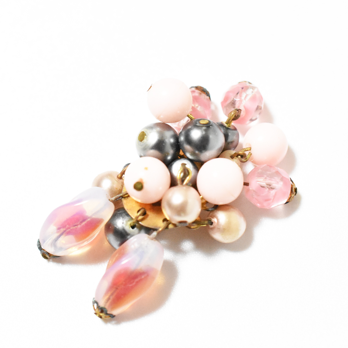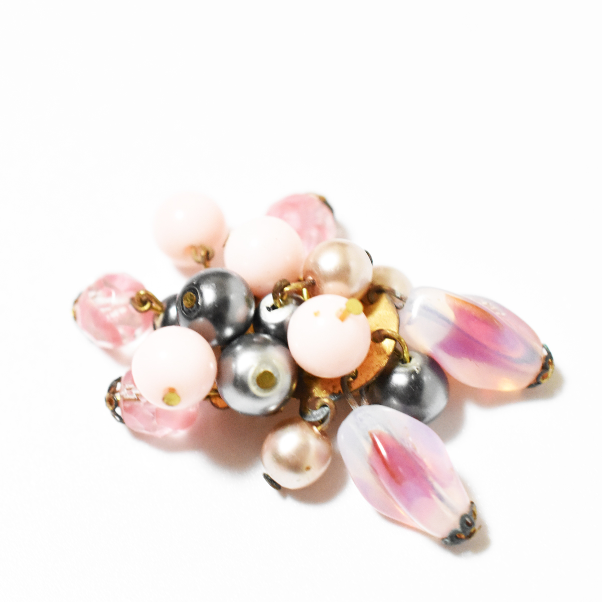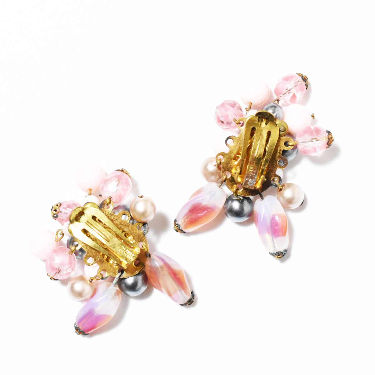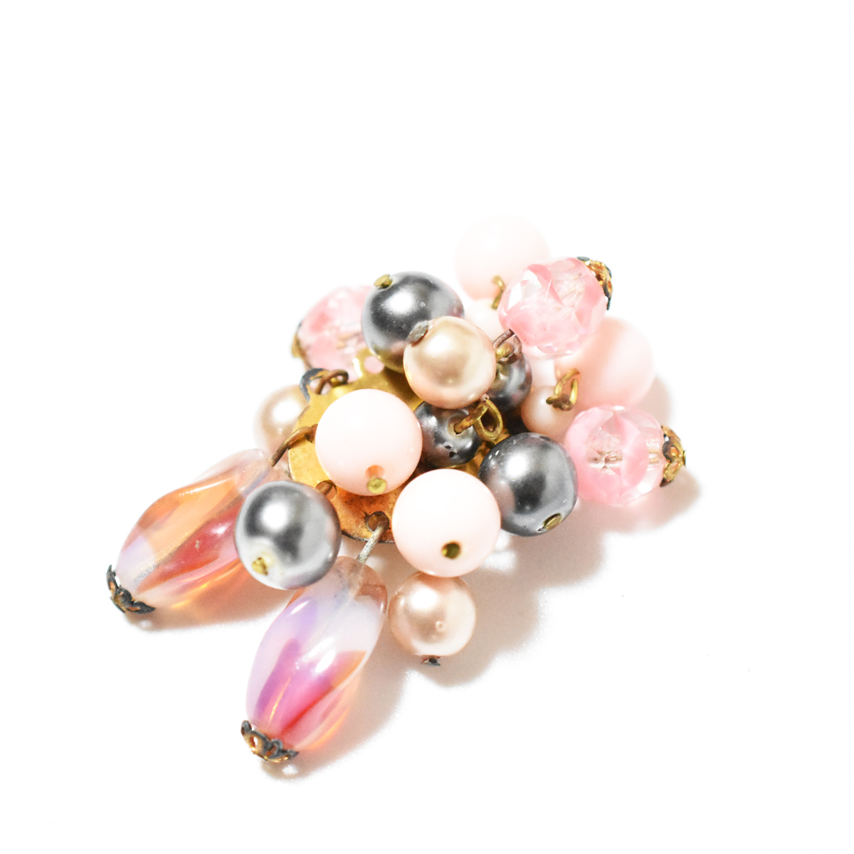 1950年代 ドイツ製 グレー×ピンク ビーズ ヴィンテージイヤリングです。