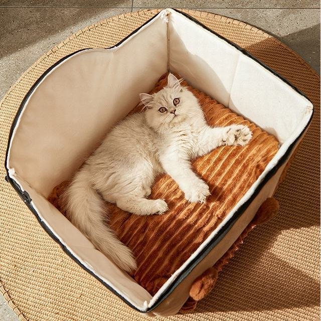 サイズ: S:39*32*31CM (体重約3kg以内のペット対応) M:44*36*35CM (体重約7kg以内のペット対応) L:49*39*41CM (体重約12kg以内のペット対応) 猫や小型犬に適した居心地のペットベッドです。ペットが楽に出入りできるようにデザインしております。 安心な素材を使用しております。柔らかい生地で空間を暖かくし、手足が伸ばしやすく,もっちりとした感触の柔らかベッドがネコと犬の体をやさしく包まれ、ふんわり支えます。 底面には滑り止めのドリップモールドを施し、湿気を防げ、摩擦抵抗を増加させ、ベッドが滑りにくくなっています。