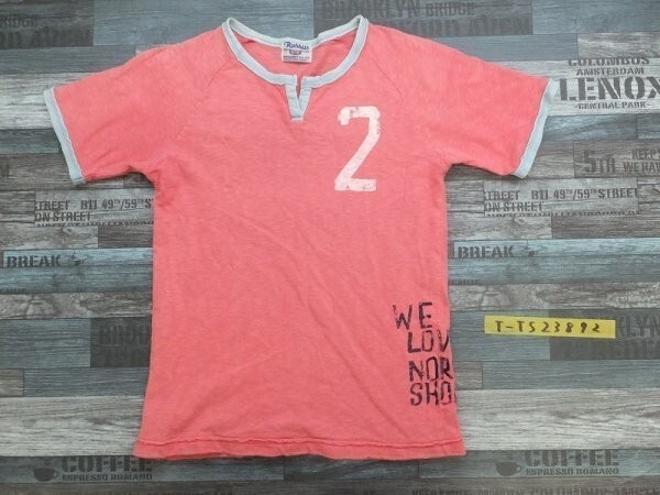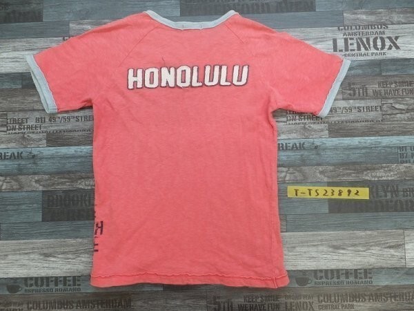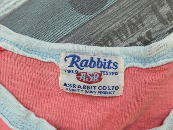 ASRABBIT エーズラビット レディース スリットネック Tシャツ コーラルレッド&水色 です。