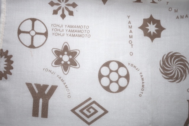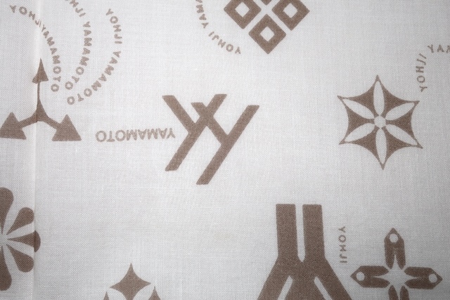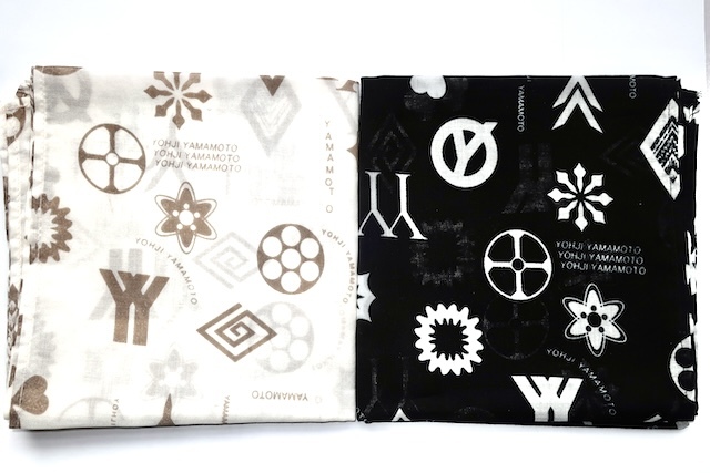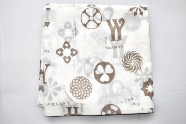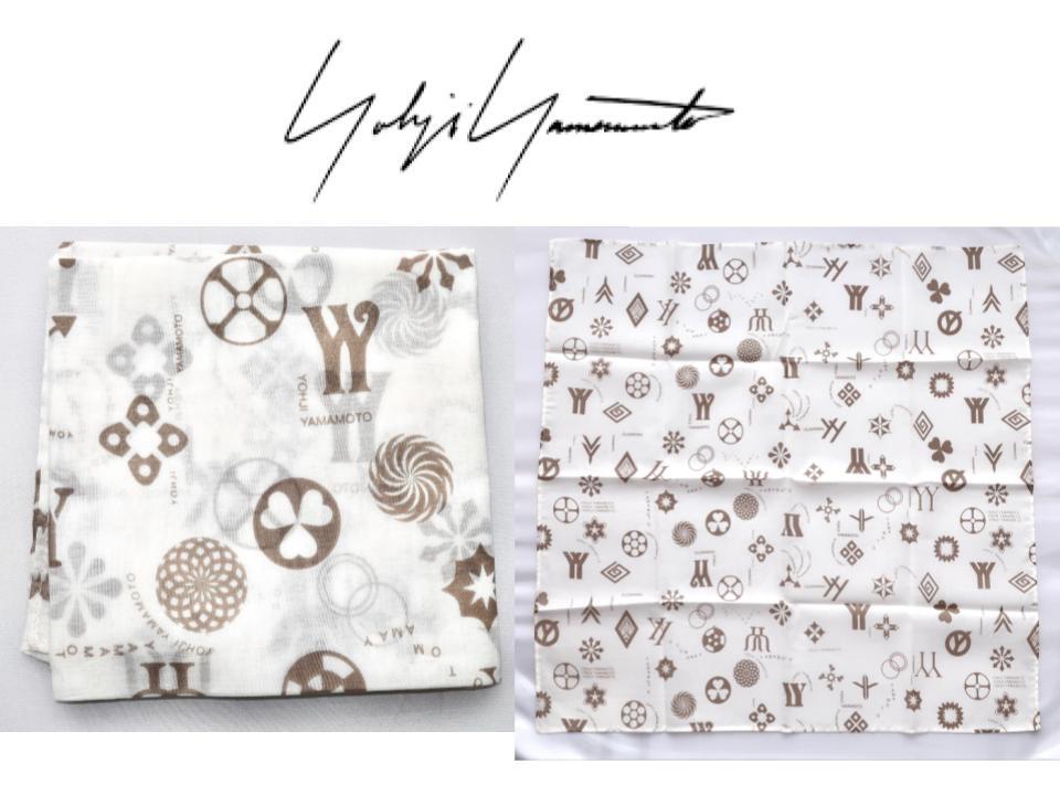 yohji yamamotoのハンカチ バンダナ スカーフ になります。たくさんの模様にyohji yamamotoのロゴがたくさんプリントされています。ハンカチとしてはもちろん、ファッションアイテムとしてなど、様々な使い方が可能です。お揃いで、ブラックもございます。