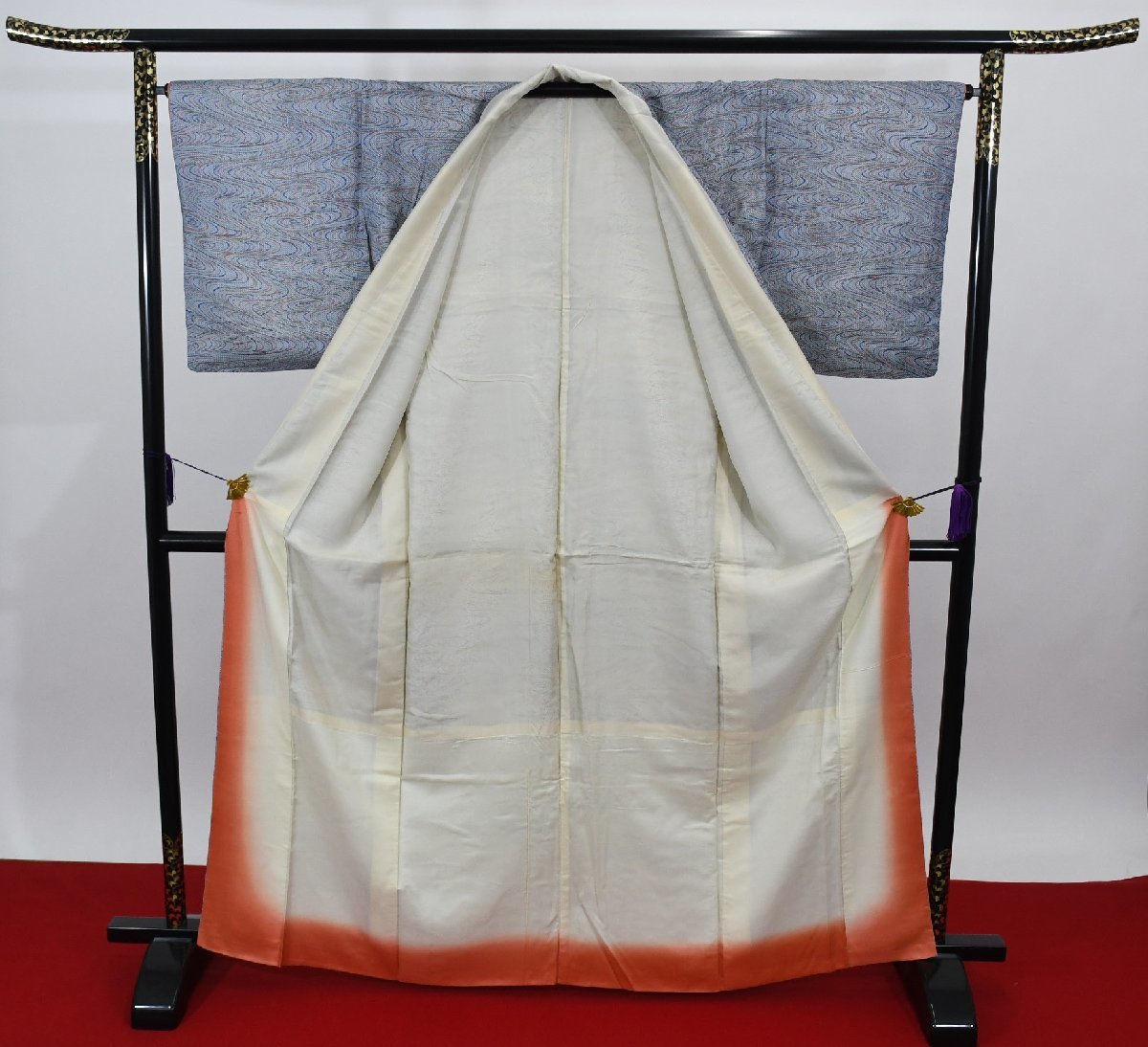 | サイズ | ▼身丈 (背中から) 158cm ▼裄丈 66cm ▼袖丈 49.5cm ▼後巾 31cm ▼前巾 23cm |