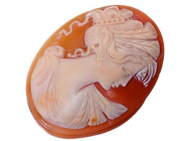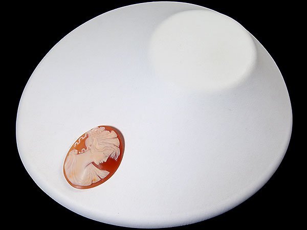 美人の横顔を繊細に彫刻で演出した、魅力的な高級シェルカメオルースです!