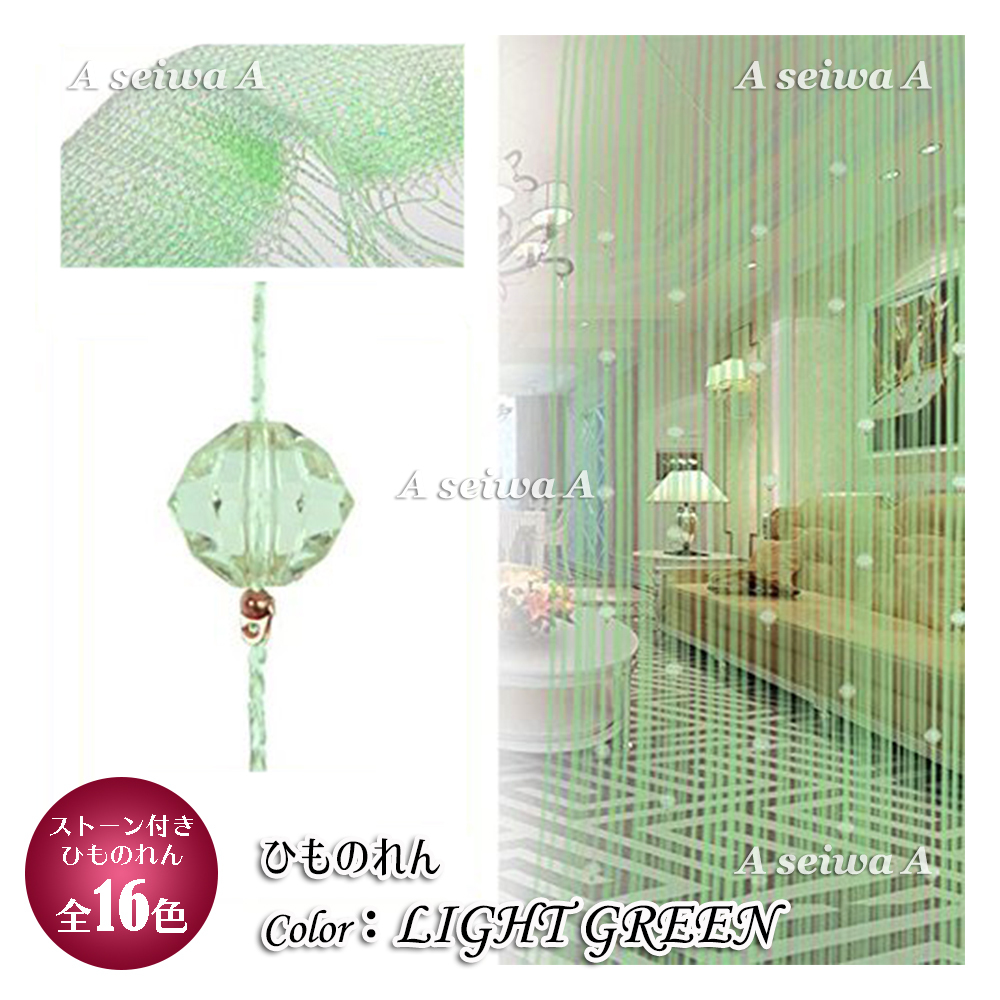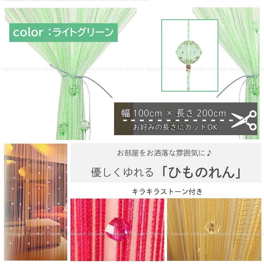ひものれん 紐のれん ストリングカーテン キラキラストーン付き おしゃれ 目隠し 模様替え 間仕切り インテリア (ライトグリーン)X2
