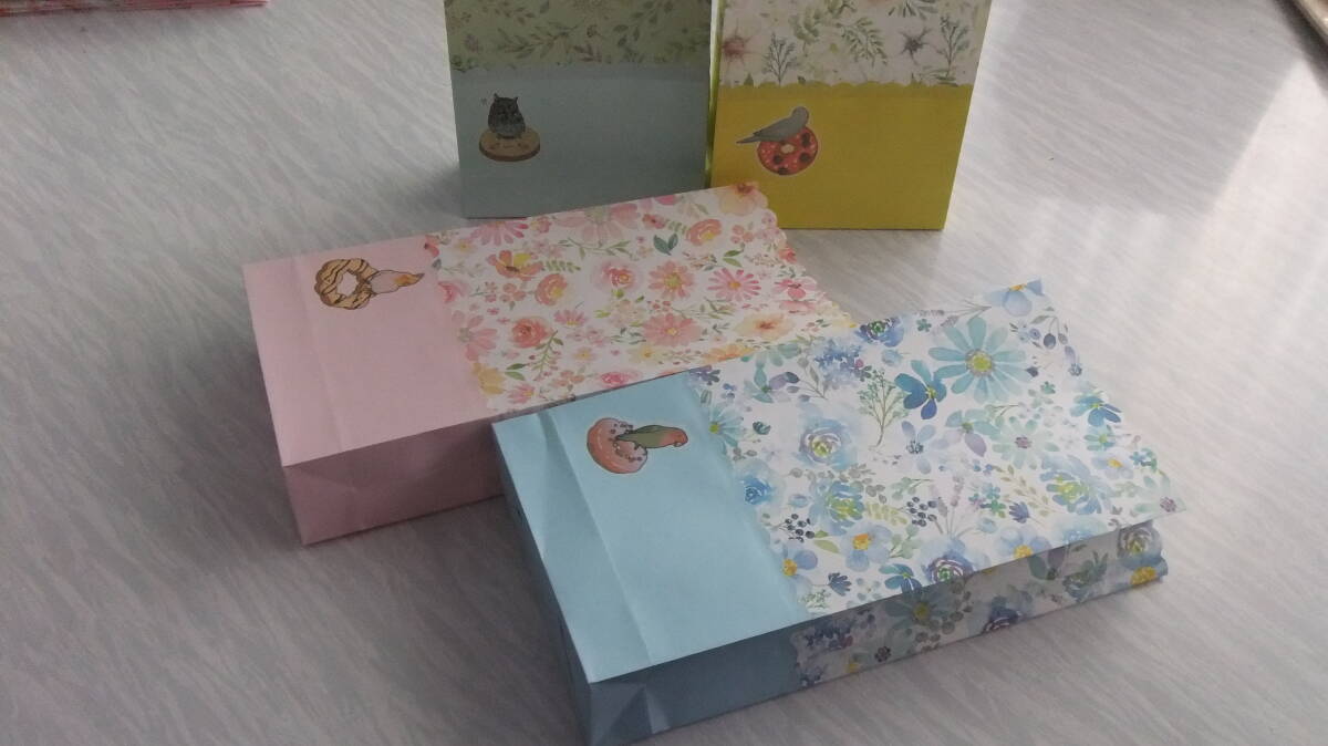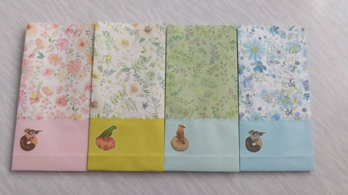 デザインペーパー(折り紙)とカラーペーパーでマチ付ラッピング袋を作りました♪