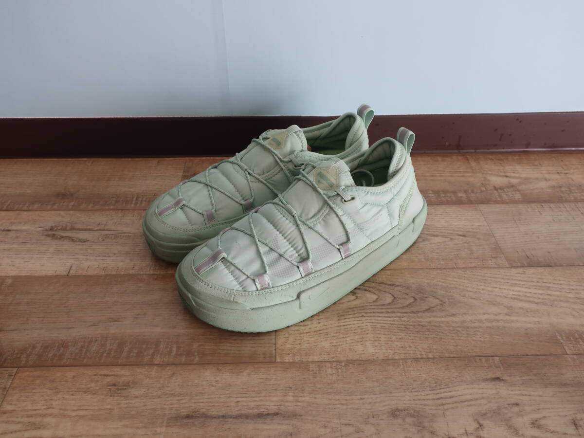 特徴的な丸みのあるシルエットのミュールスタイルから新たにアッパーをドーム状の防寒仕様に改め、キルティングのように厚みを持たせた素材が厳しい寒さから足を保護してくれます。