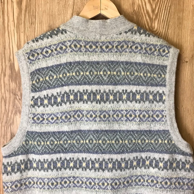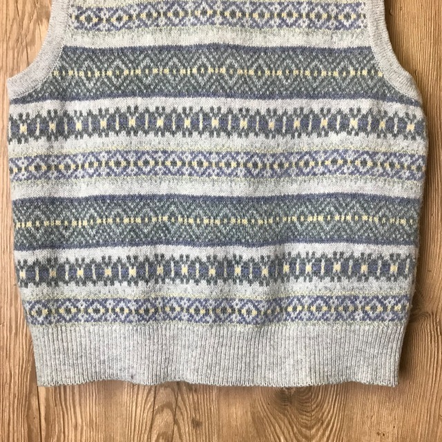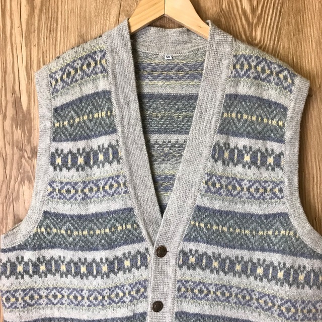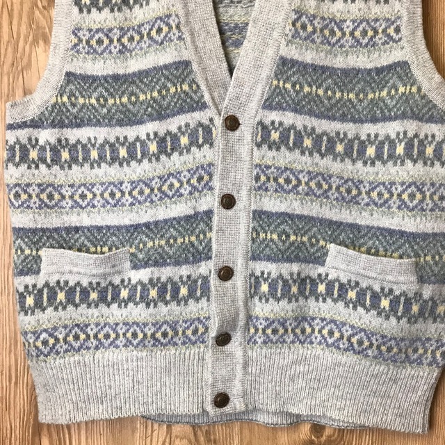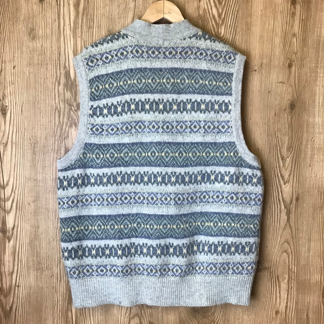 スペイン製 80s VINTAGE ボーダーデザイン 総柄 ウール ベスト メンズ Lサイズ程 80年代 ヴィンテージ ストリート 古着 e24022913