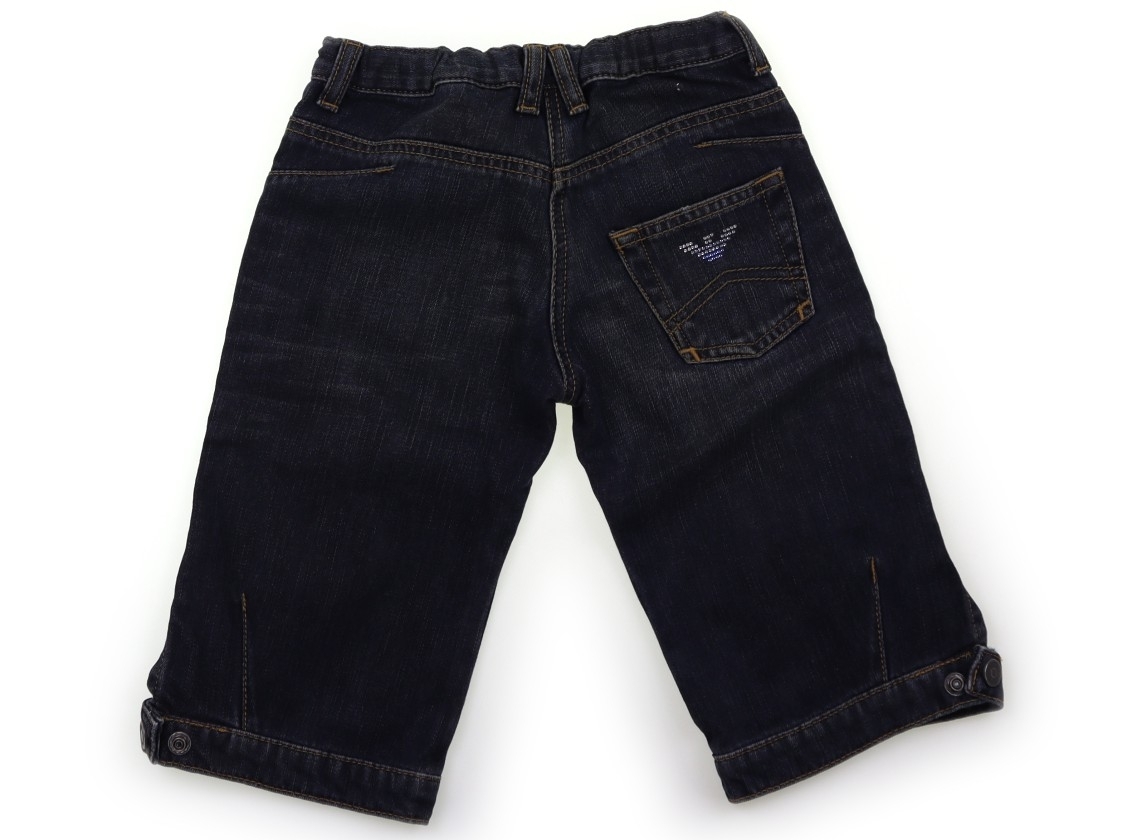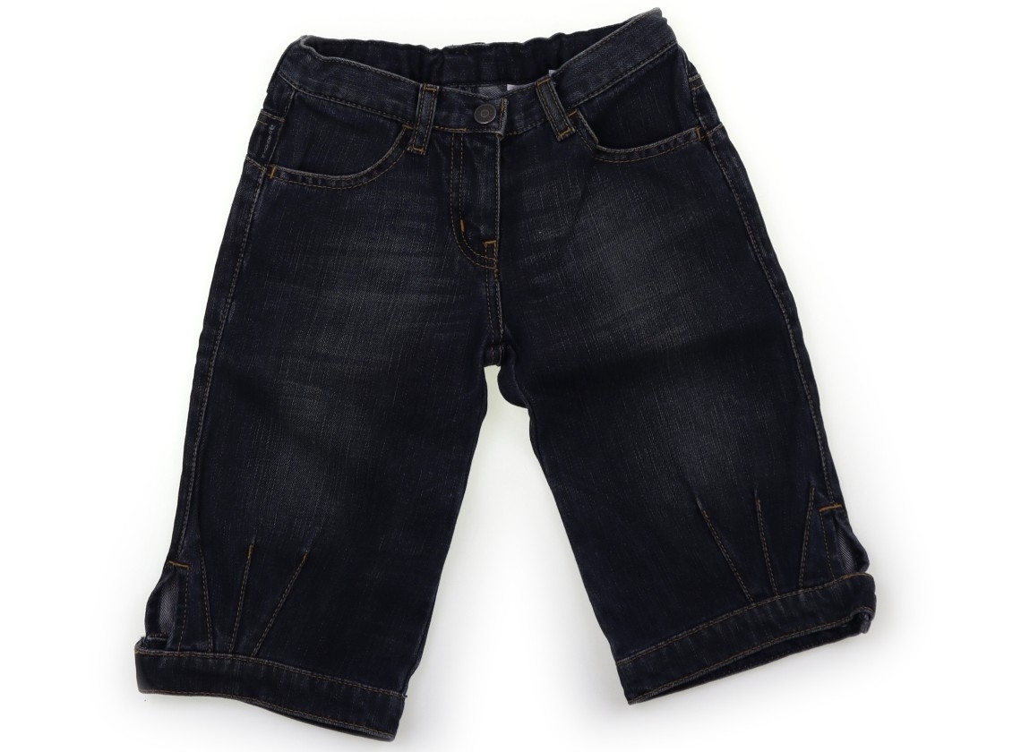 実際のサイズ表記は112cm。サイズ調整ゴムが付いています。お尻にスレ感ありますが、目立った汚れはなく、まだまだお使い頂けそうです。しっかりとした重みのあるデニム地。半端丈です。