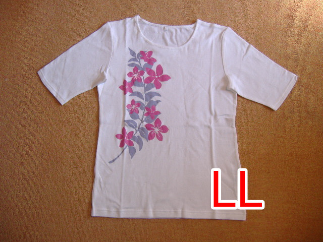 5分袖Tシャツ★マイレ&プルメリア★白★LLサイズ