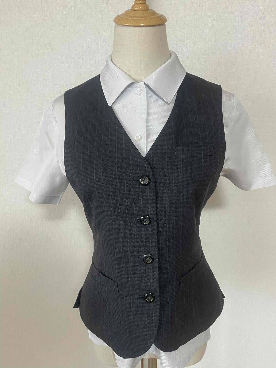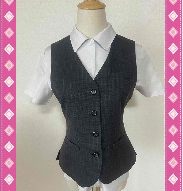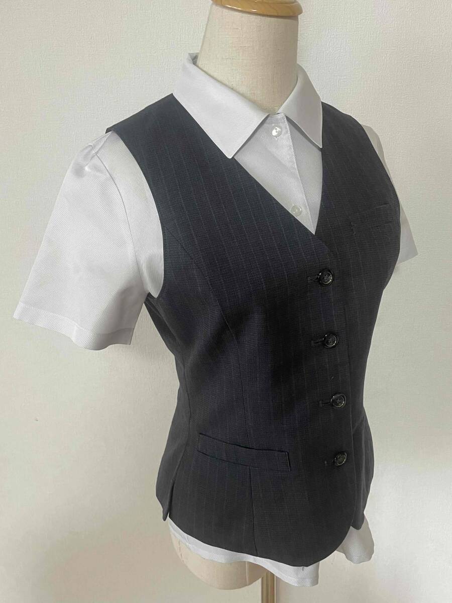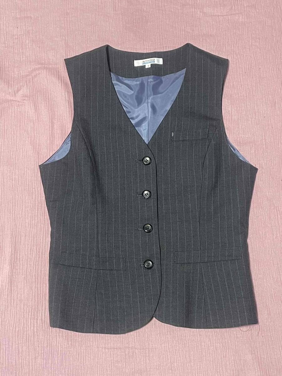 ※Bランク【中古】ALPHAPIER_9号ベスト(チャコールグレー:ストライプ)AR2819-1/アルファピア/かわいい会社事務服/おしゃれOL制服