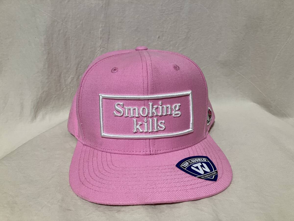 Smoking Kills ロゴ刺繍入りキャップ 帽子 ピンク 刺繍/白 中古品 少し薄汚れあり スナップバック ㈱せーの