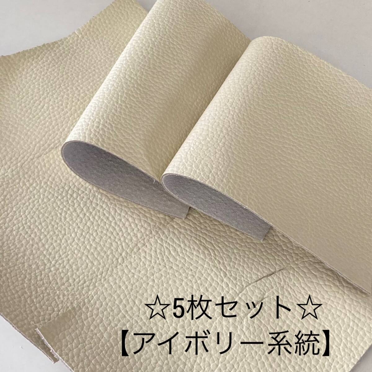 ☆お買い得品☆【送料185円】◆革 ハギレ シュリンク 型押し 牛革 天然皮革 アイボリー系統 5枚セット ①