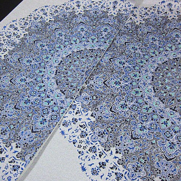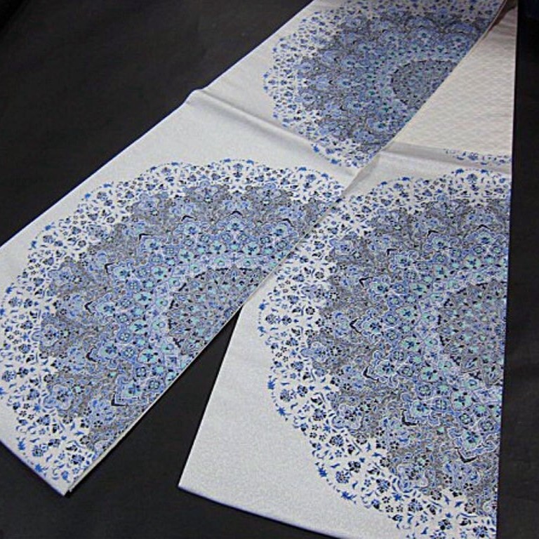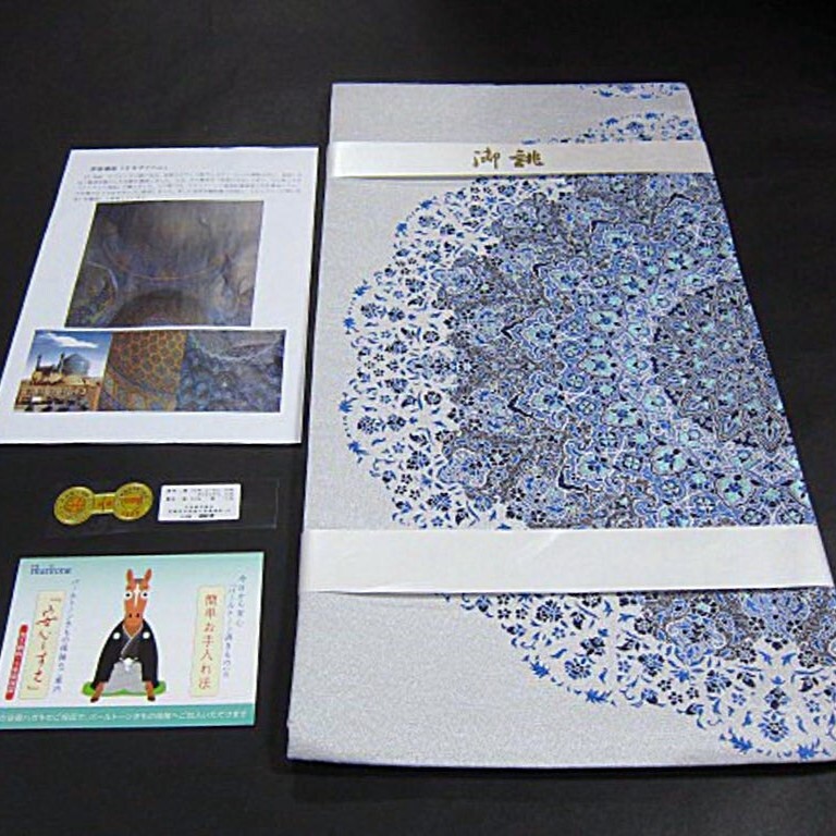 新品【パールトン加工・綿芯仕立上り】 西陣織袋帯です。『17世紀 サファーヴィ朝の王は高原のオアシス都市イスファハンへ、政治・文化・経済を集中した王都を建設しました。人は、その繁栄を世界の半分を評し、その美しさをイスラムの真珠と讃えました。この帯では、イスファハンの象徴的建造物で世界遺産のイマール広場のモスクをモチーフに創作しました。美しい造形を織組織で再現し、トルコブルーの深い色合いを藍染にて表現しています。