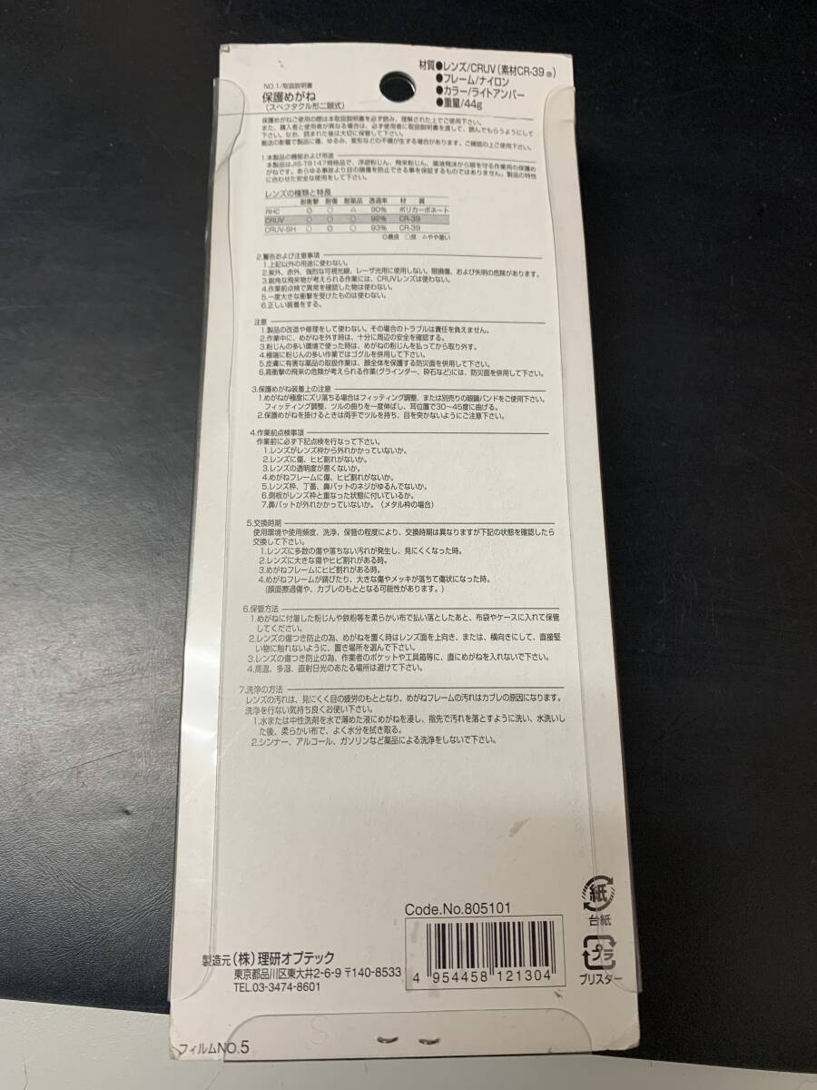新品 理研オプテック 保護メガネ レンズ:CRUV(素材CR-39)、フレーム:ナイロン