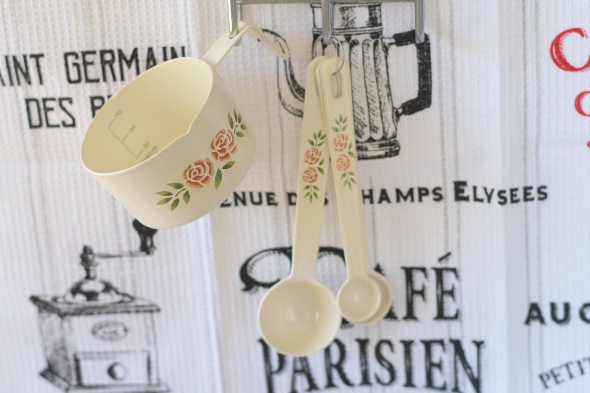 可愛くて実用的なメジャーカップです。使わないときにはフックで壁にかけてもステキです