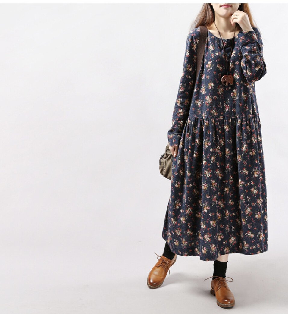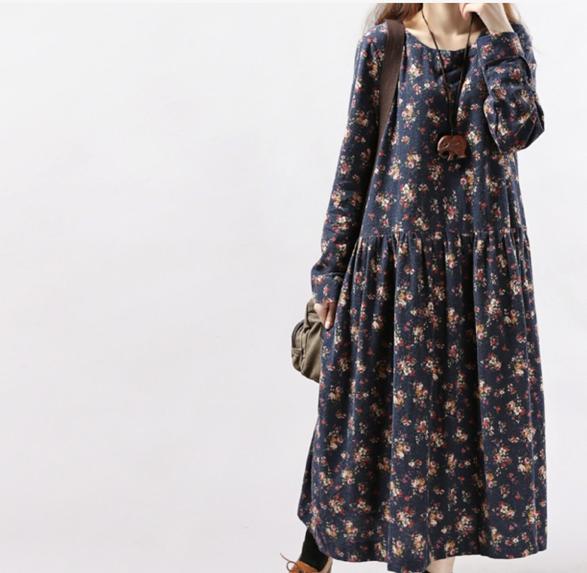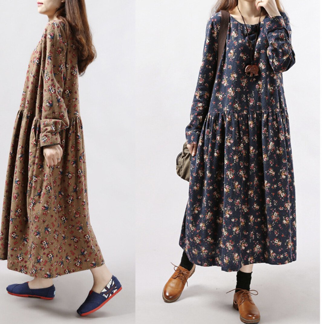 NEW! 春秋 レディース 長袖 花柄 ワンピース BQ17