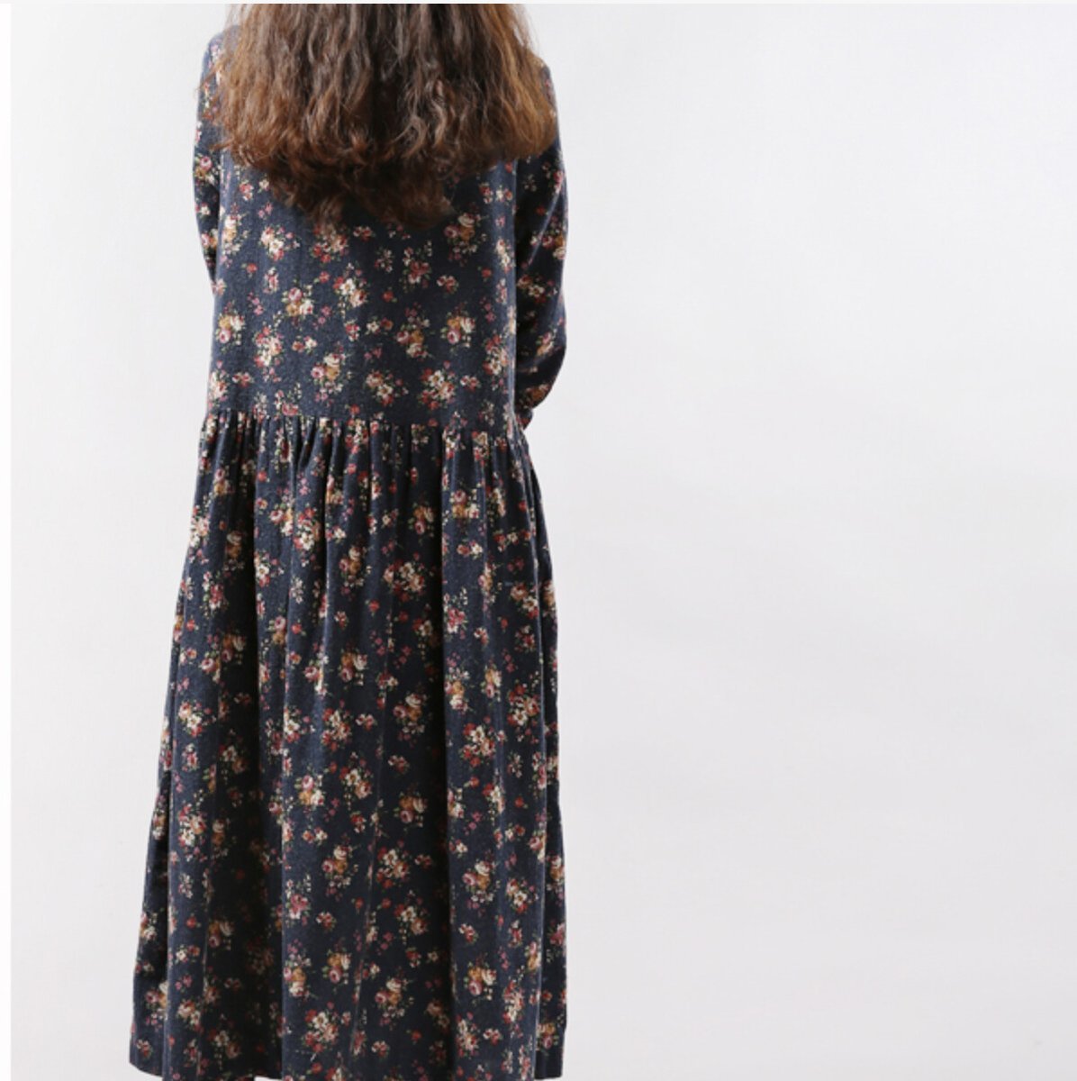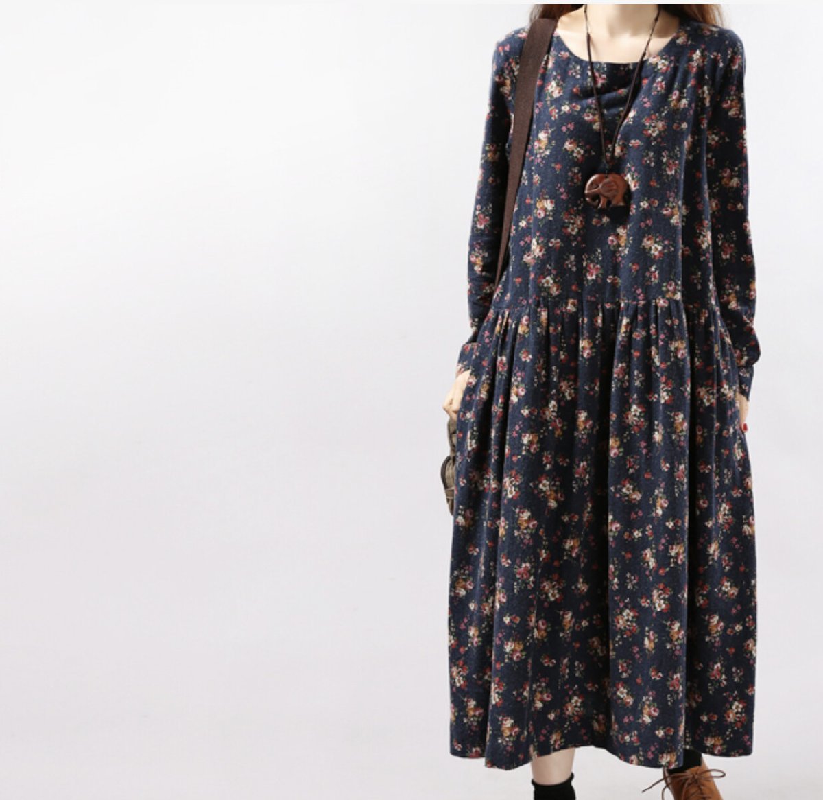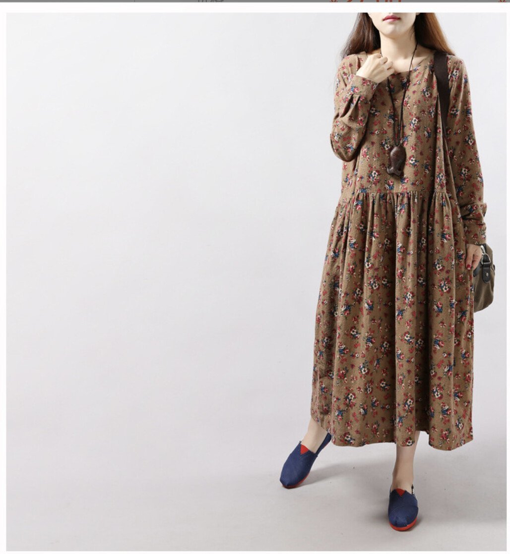NEW! 春秋 レディース 長袖 花柄 ワンピース BQ17