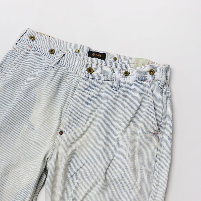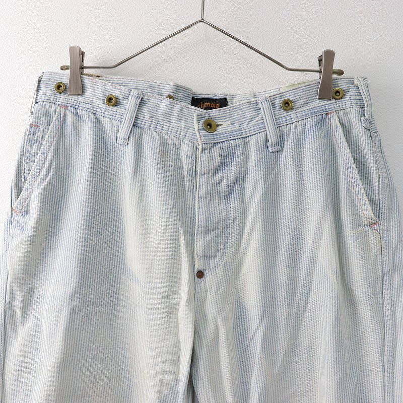 チマラ chimala CS13WP01B ヒッコリーワークパンツ 28/ブルー系 インディゴ ダメージ加工 ヴィンテージ加工【2400013653435】