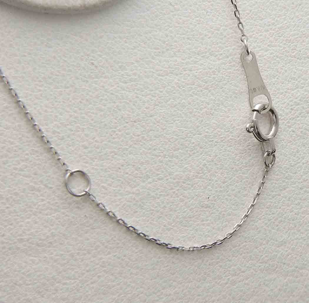 ペンダントのサイズ約: ――――― ネックレスの長さ:約40cm 幅約0.9mm K18WG刻印有り 約3cm短く出来るアジャスターカン有り 総重量: 約2.6g 鑑定・鑑別 有無: 無し * 新品 |