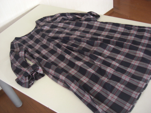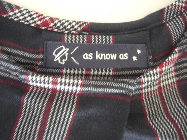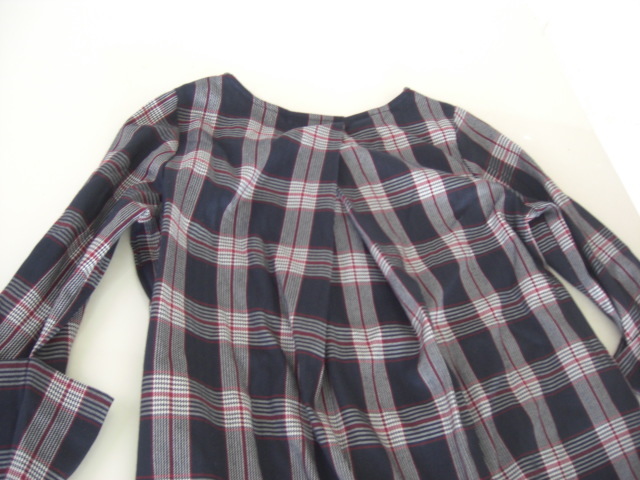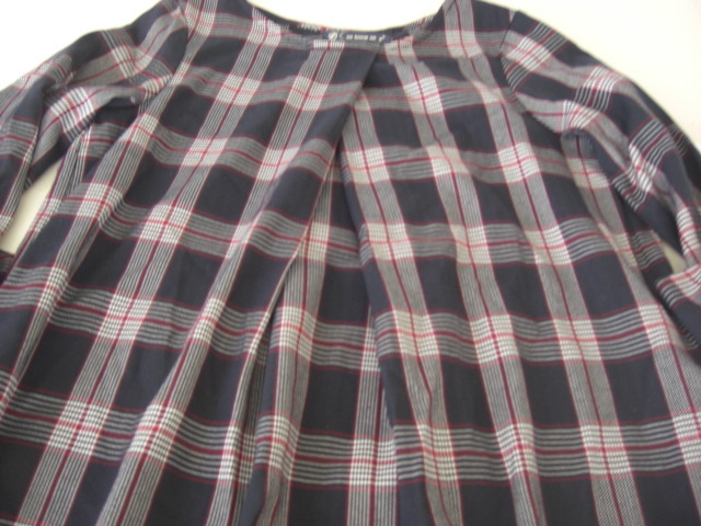 美品アズノウアズピンキー チェックそでリボンチュニック紺