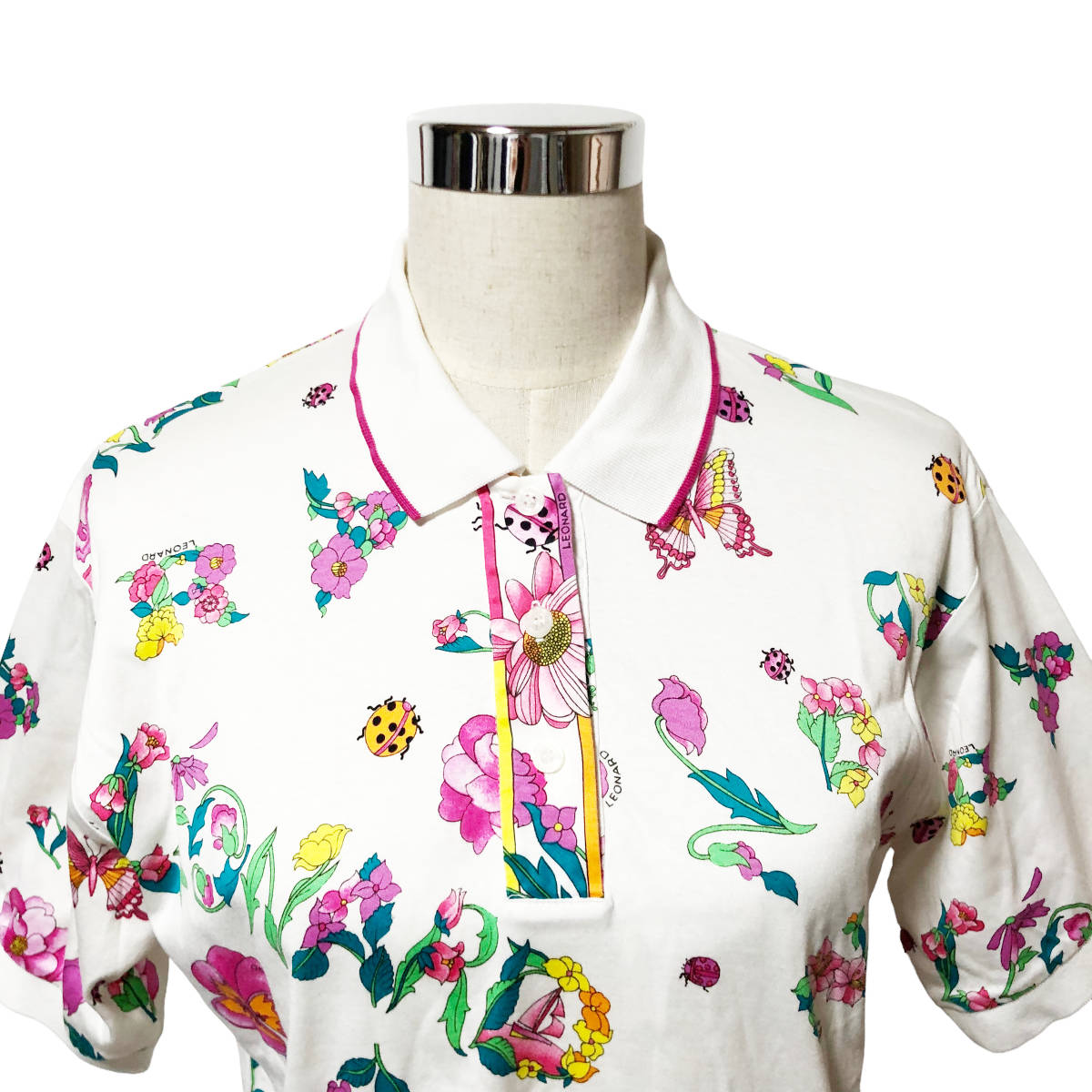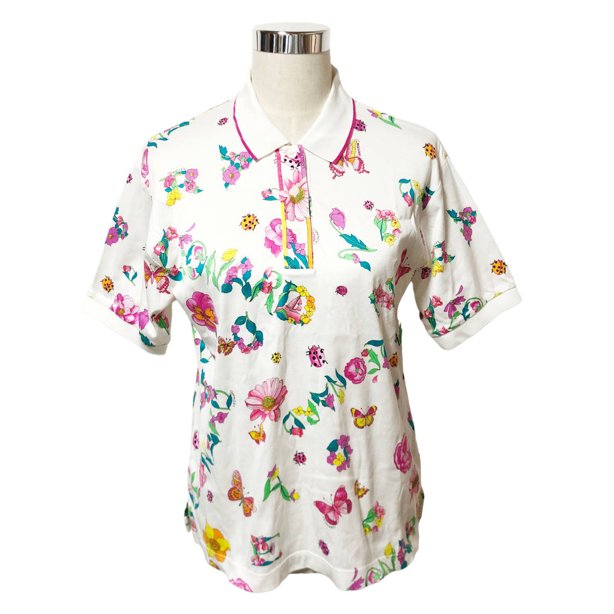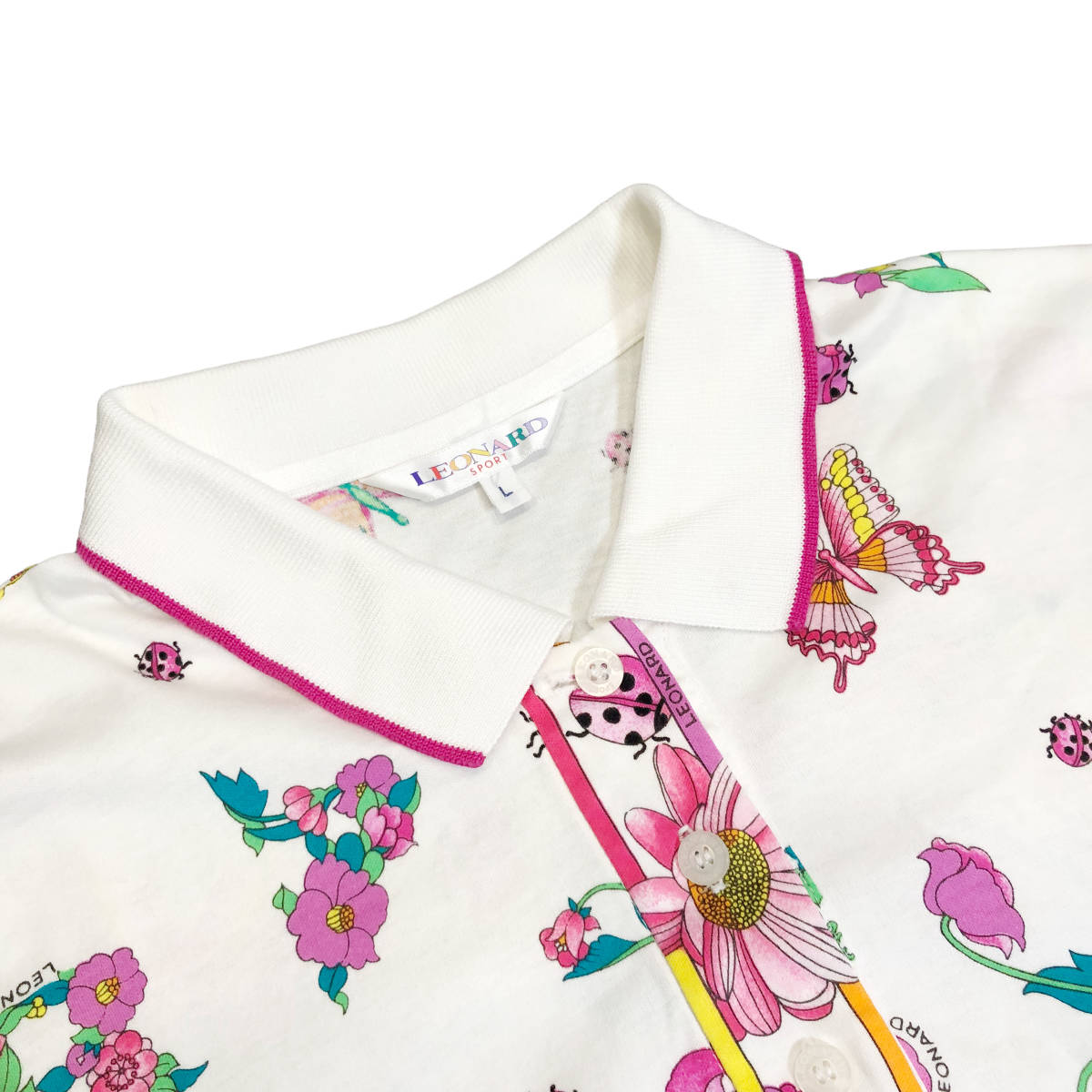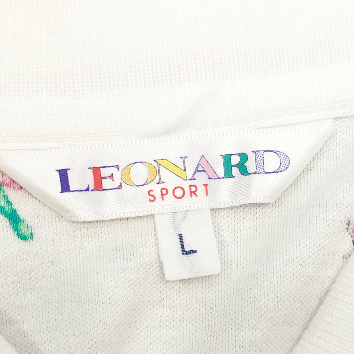 LEONARD SPORT レオナール ポロシャツ 総柄 花柄 半袖 L 白 レディース A38