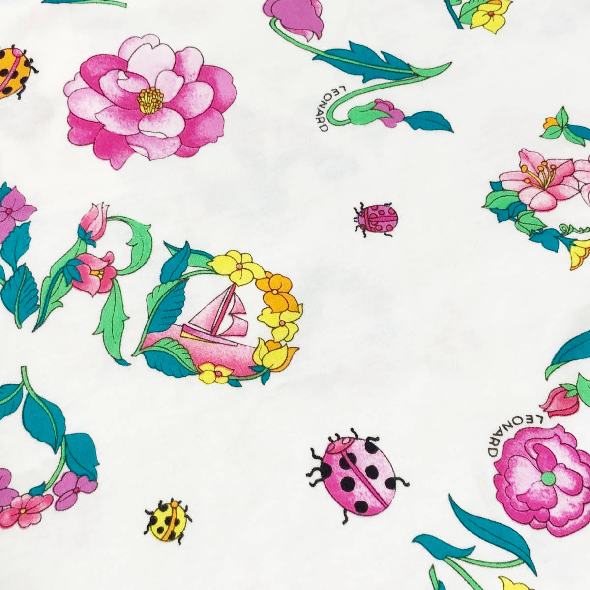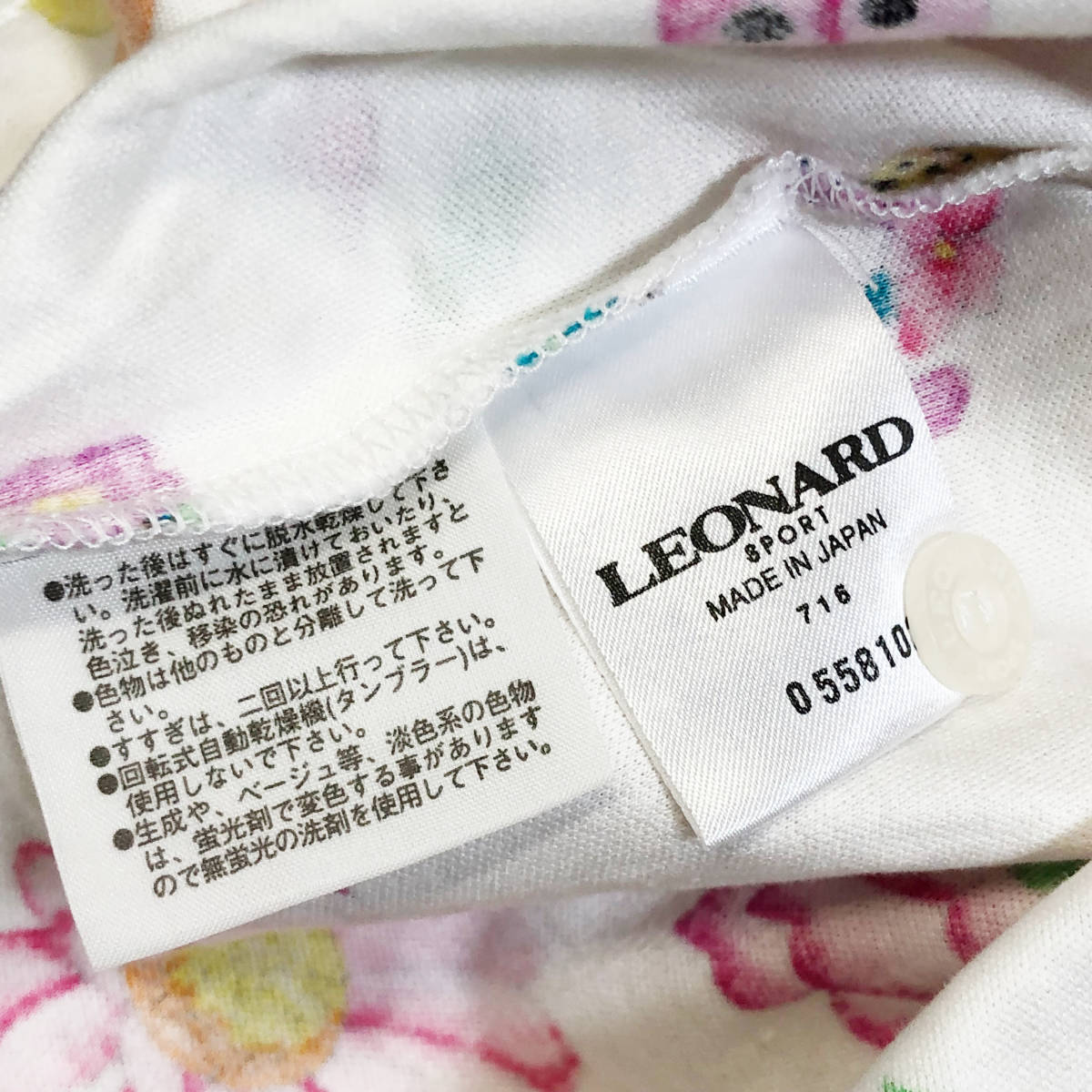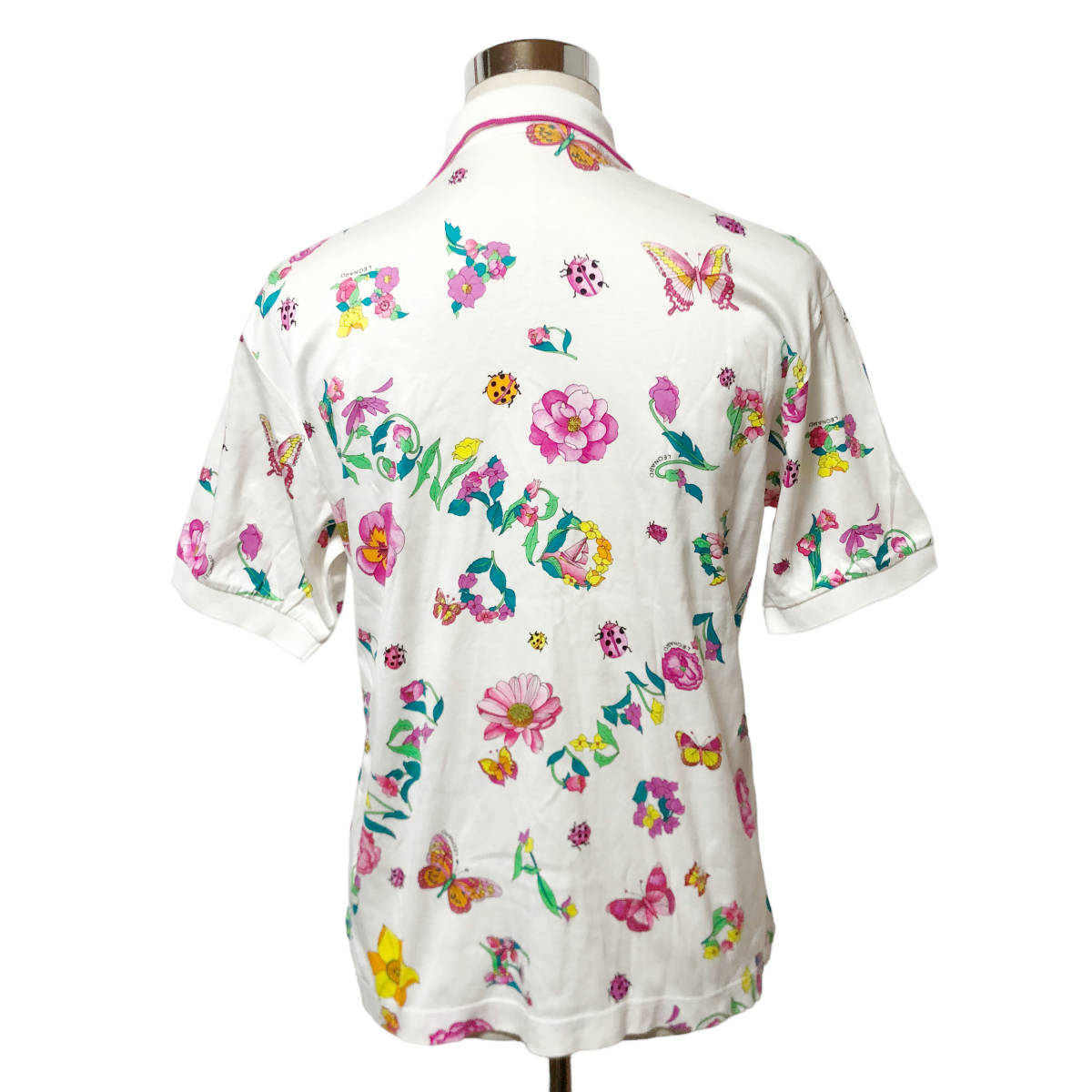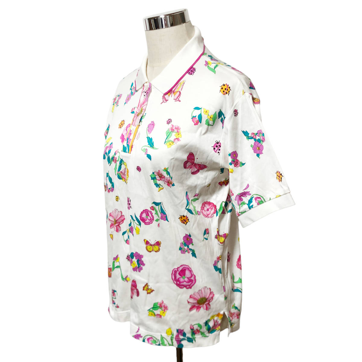 LEONARD SPORT レオナール ポロシャツ 総柄 花柄 半袖 L 白 レディース A38