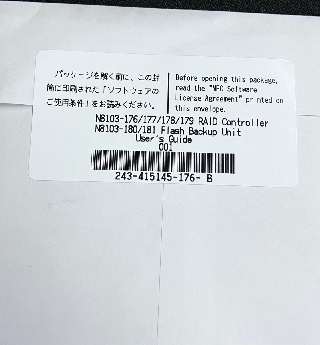 商品名 | NEC Express5800シリーズN8103-176/177/178/179 RAID Controller N8103-180/181 Flash Backup Unit Users Guide |