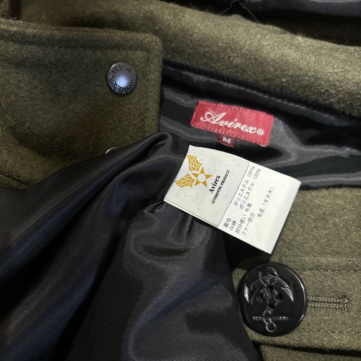 | B648美品!■Avirexアヴィレックス★モスグリーン/メルトン&中綿★モッズコート■M | ||||||||||||||||||||