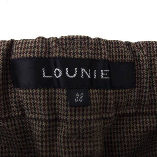 ルーニィ LOUNIE パンツ テーパード ゆったり 千鳥柄 コットン混 ジップフライ 38 茶 ブラウン /NT14 レディース