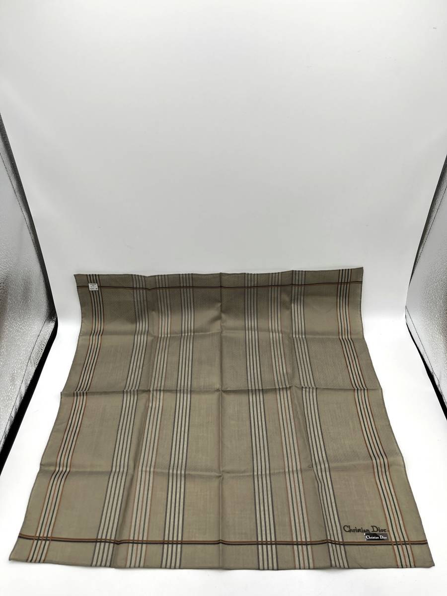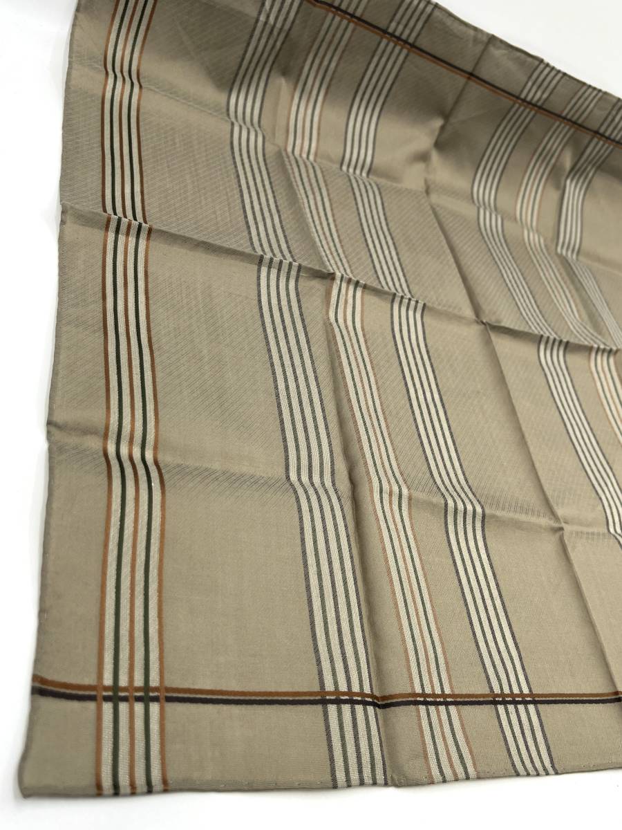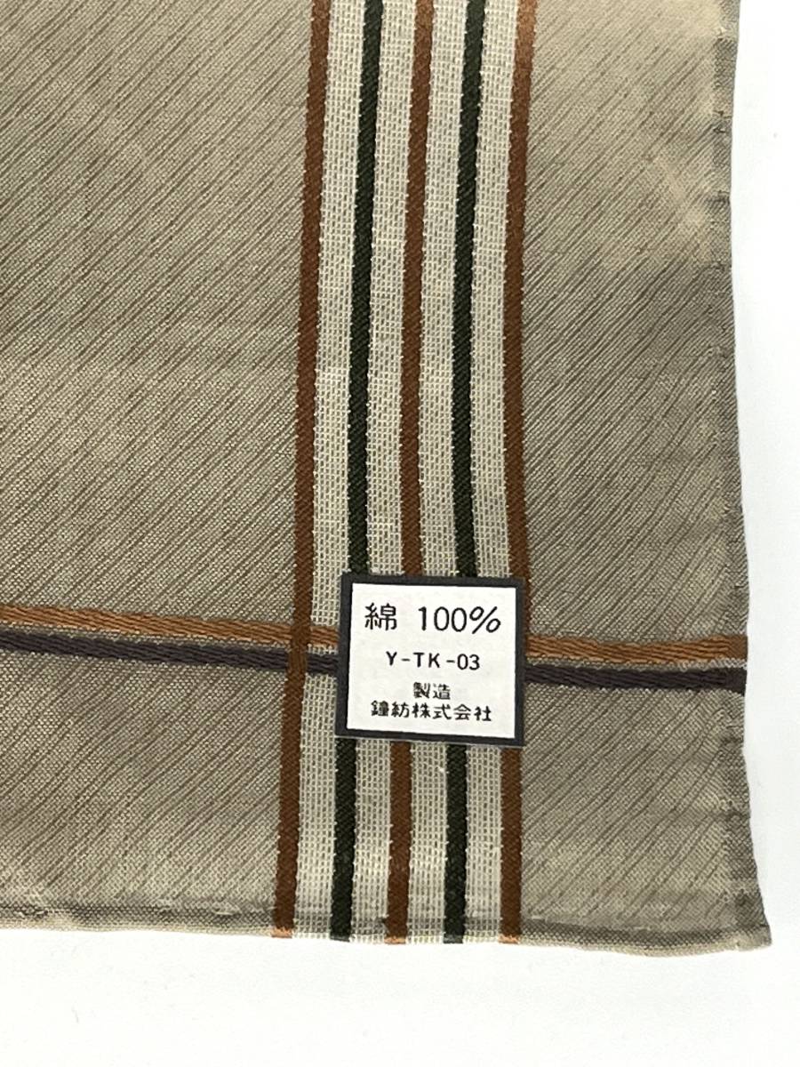 ハンカチ バンダナ ストライプ柄 カーキ系 ロゴ刺繍ブラウン 綿100% メンズ