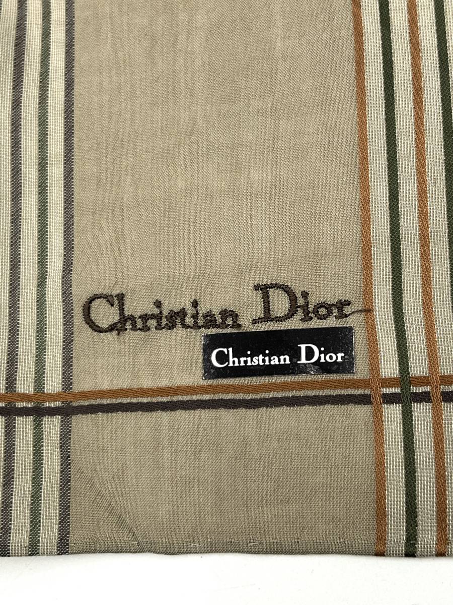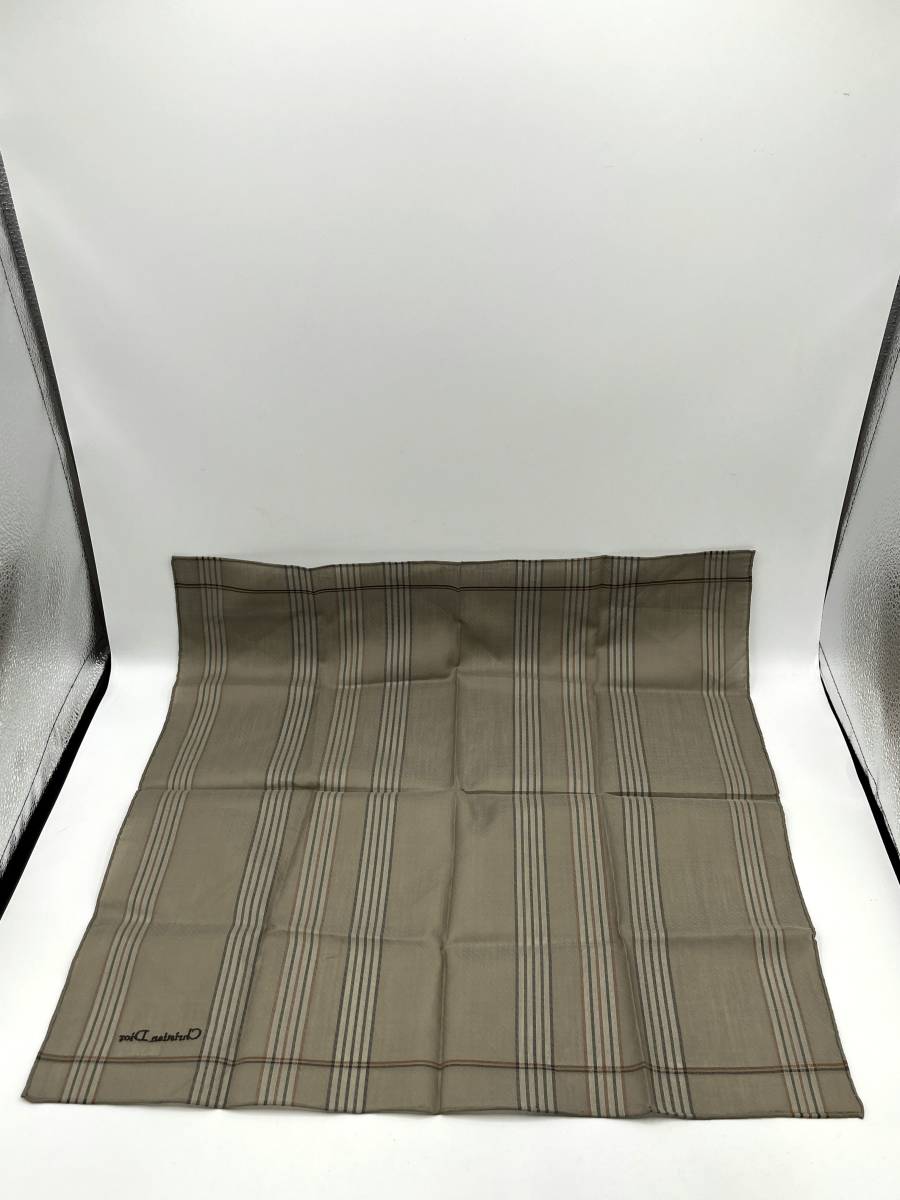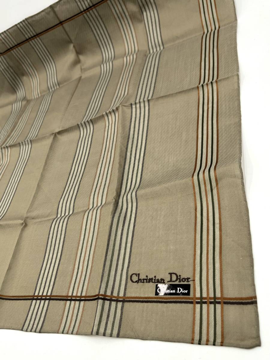 ハンカチ バンダナ ストライプ柄 カーキ系 ロゴ刺繍ブラウン 綿100% メンズ