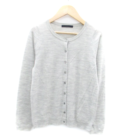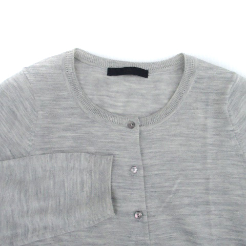 ノーリーズ Nolley's PINK ニットカーディガン ラウンドネック ミドル丈 ウール 38 グレー /HO19 レディース