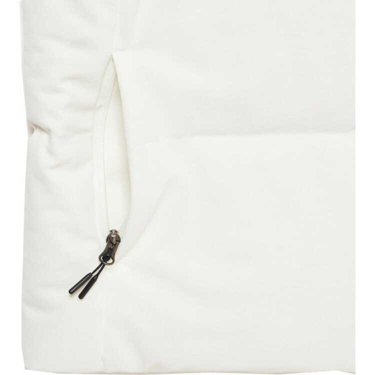 素材:表地/ポリエステル100%(裏面/ポリウレタンラミネート)、裏地/ポリエステル100%、リブ部分/アクリル64%、毛21%、ナイロン14%、ポリウレタン1%、中わた/ダウン80%、フェザー20%